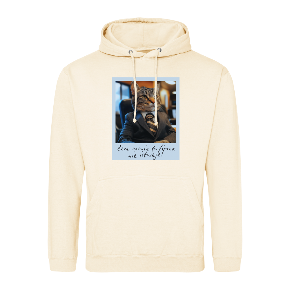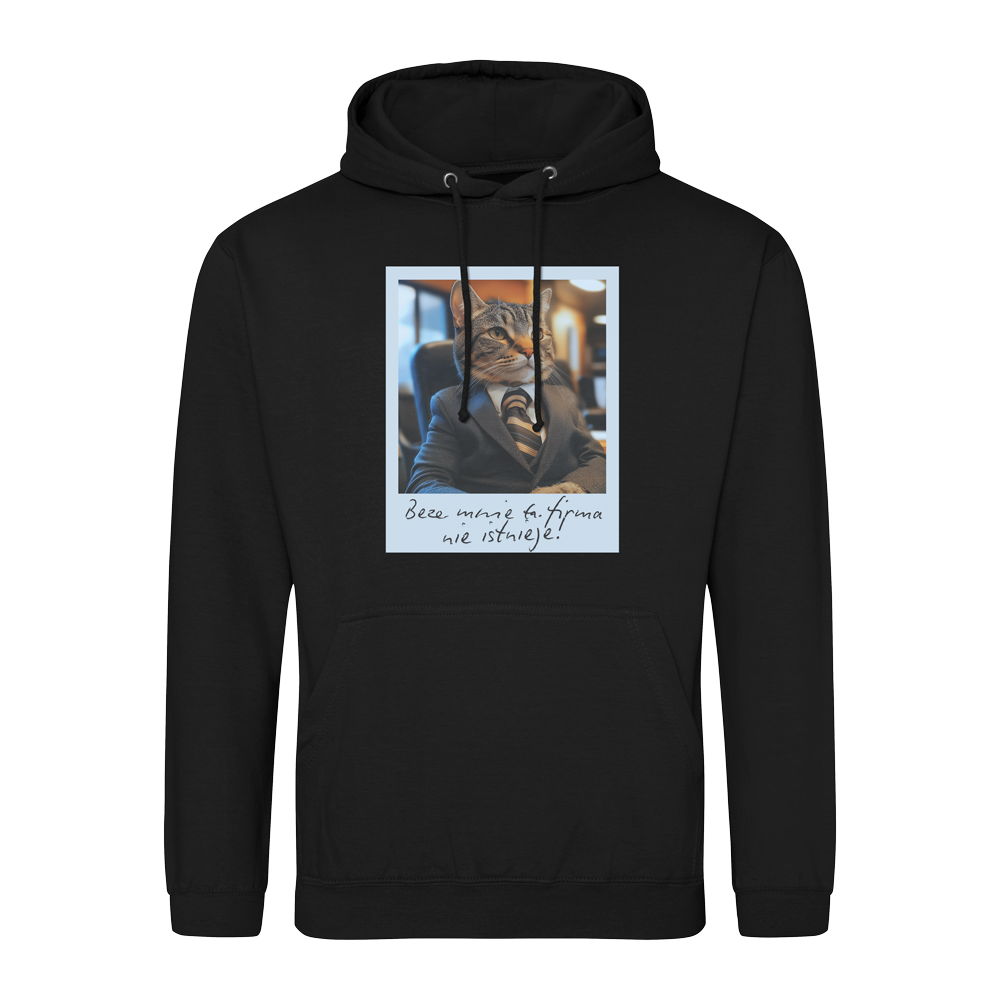 Podpis pod zdjęciem mówi wszystko: „Beze mnie ta firma nie istnieje”. I trudno się z nim nie zgodzić. Ten futrzasty dyrektor generalny wie, że dobre miejsce na drzemkę to podstawa każdej udanej decyzji strategicznej. Nie pytaj, jak zdobył swoją pozycję – odpowiedź pewnie brzmi: charyzma. Bluza dla tych, którzy wiedzą, że prawdziwym fundamentem sukcesu jest odrobina dystansu i... kocie rządy.