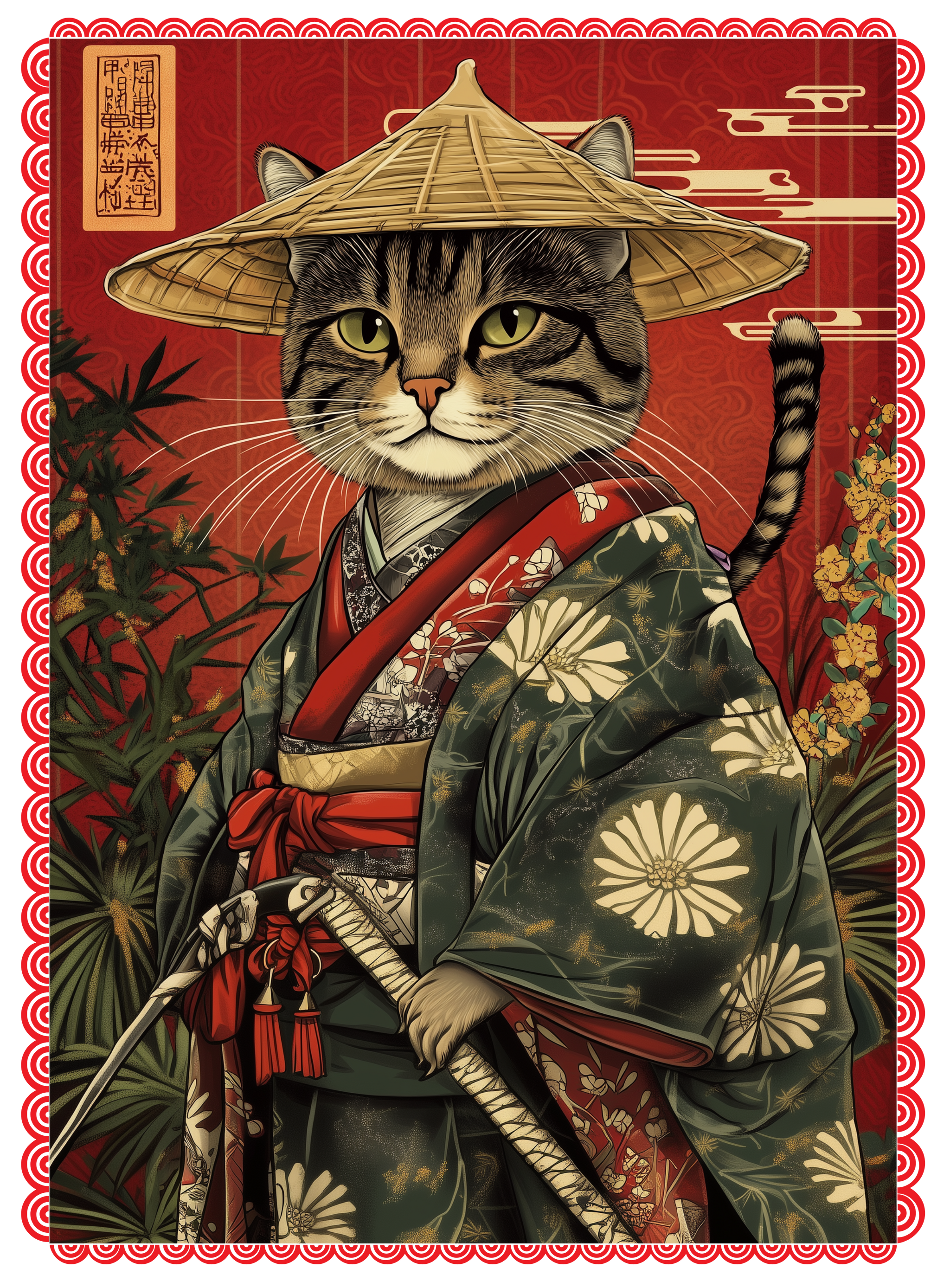 W głębi bambusowych lasów i na ścieżkach zapomnianych tradycji kroczy on – Bushido Neko. Jego postawa jest spokojna, ale spojrzenie zdradza głęboką mądrość i nieustępliwość wojownika. Z każdym krokiem opowiada historię honoru, lojalności i harmonii z naturą, przypominając, że siła nie zawsze leży w mieczu, ale w sercu, które potrafi zrozumieć piękno świata.