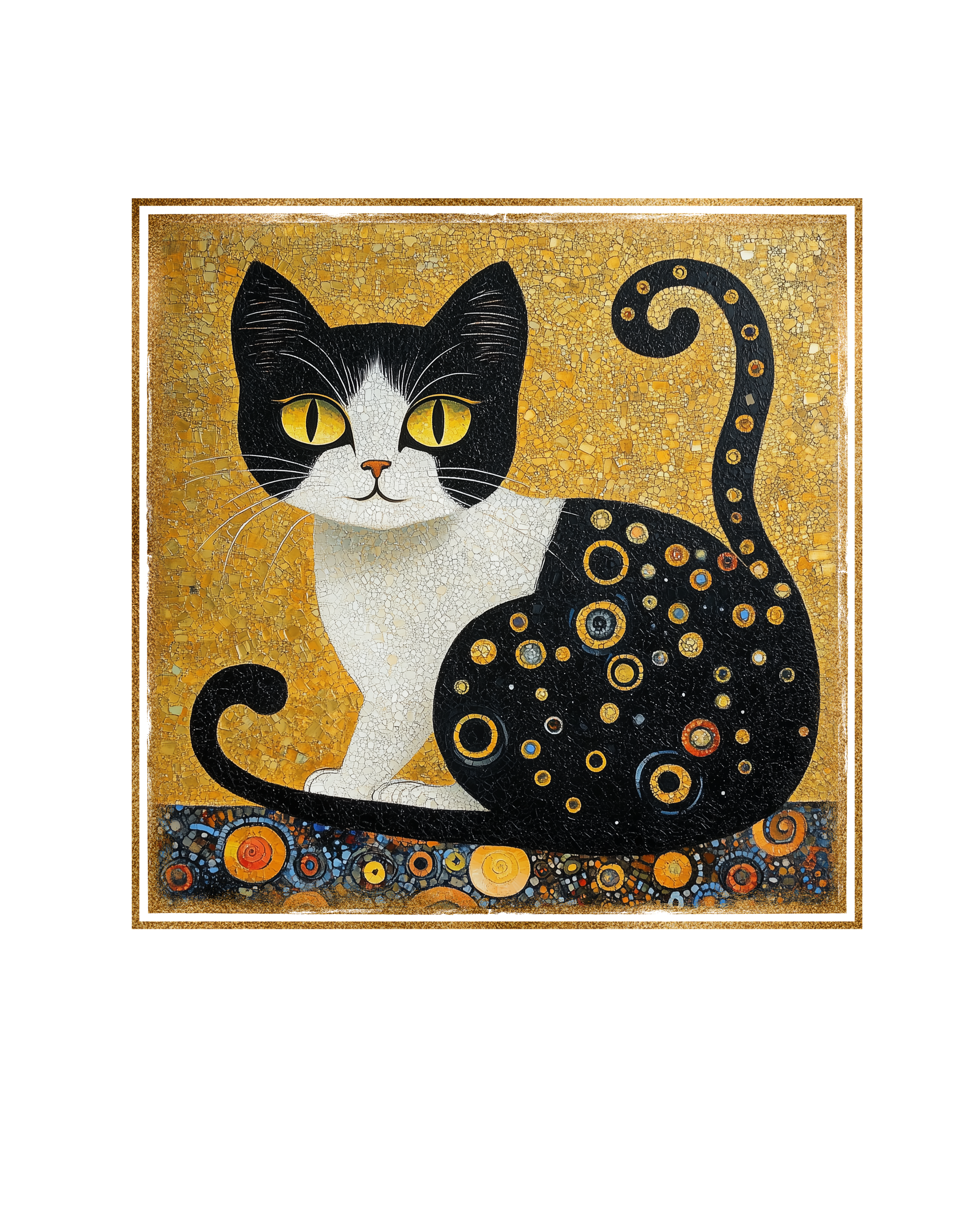 Gdy Gustav Klimt odwracał wzrok, kot już siedział obok, dumny, z futrem utkanym z okręgów i spiral, które ożywały niczym pulsujący ornament. Czy to on zainspirował mistrza do złotych, hipnotyzujących detali? A może to on był prawdziwym artystą, którego geniusz pozostał sekretem?