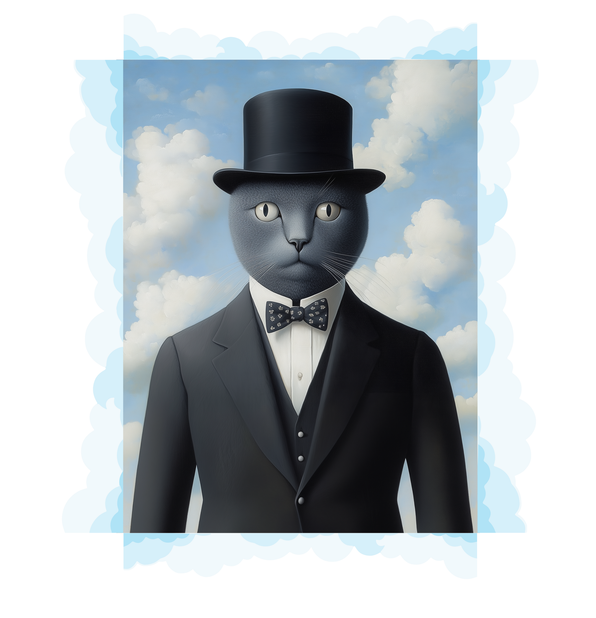 Czy patrzy na Ciebie, czy przez Ciebie? Czy to sen, czy rzeczywistość? Nic nie jest takie, jak się wydaje. Ten kot to mistrz iluzji, przypominający, że świat jest pełen ukrytych znaczeń. Hołd dla surrealizmu Magritte'a, który umiejętnie połączył prostotę z zagadką.
