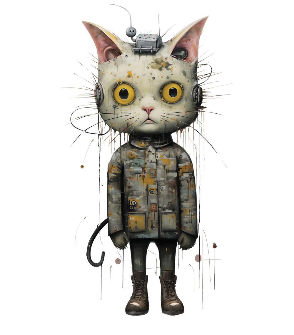 W erze, gdzie wszystko można zapisać w kodzie i przekonwertować na dane, istnieje on – kot, który pamięta jeszcze dźwięk trzasku winylowych płyt i ciepło lampowych radioodbiorników. Jego cyfrowe wąsy odbierają najsubtelniejsze sygnały przyszłości, podczas gdy analogowe serce bije rytmem starych melodii, zapomnianych listów i odręcznych rysunków.
