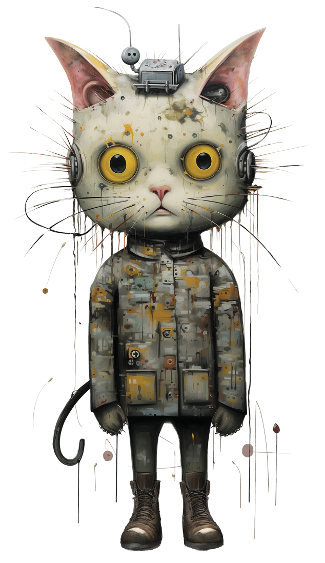 W erze, gdzie wszystko można zapisać w kodzie i przekonwertować na dane, istnieje on – kot, który pamięta jeszcze dźwięk trzasku winylowych płyt i ciepło lampowych radioodbiorników. Jego cyfrowe wąsy odbierają najsubtelniejsze sygnały przyszłości, podczas gdy analogowe serce bije rytmem starych melodii, zapomnianych listów i odręcznych rysunków.