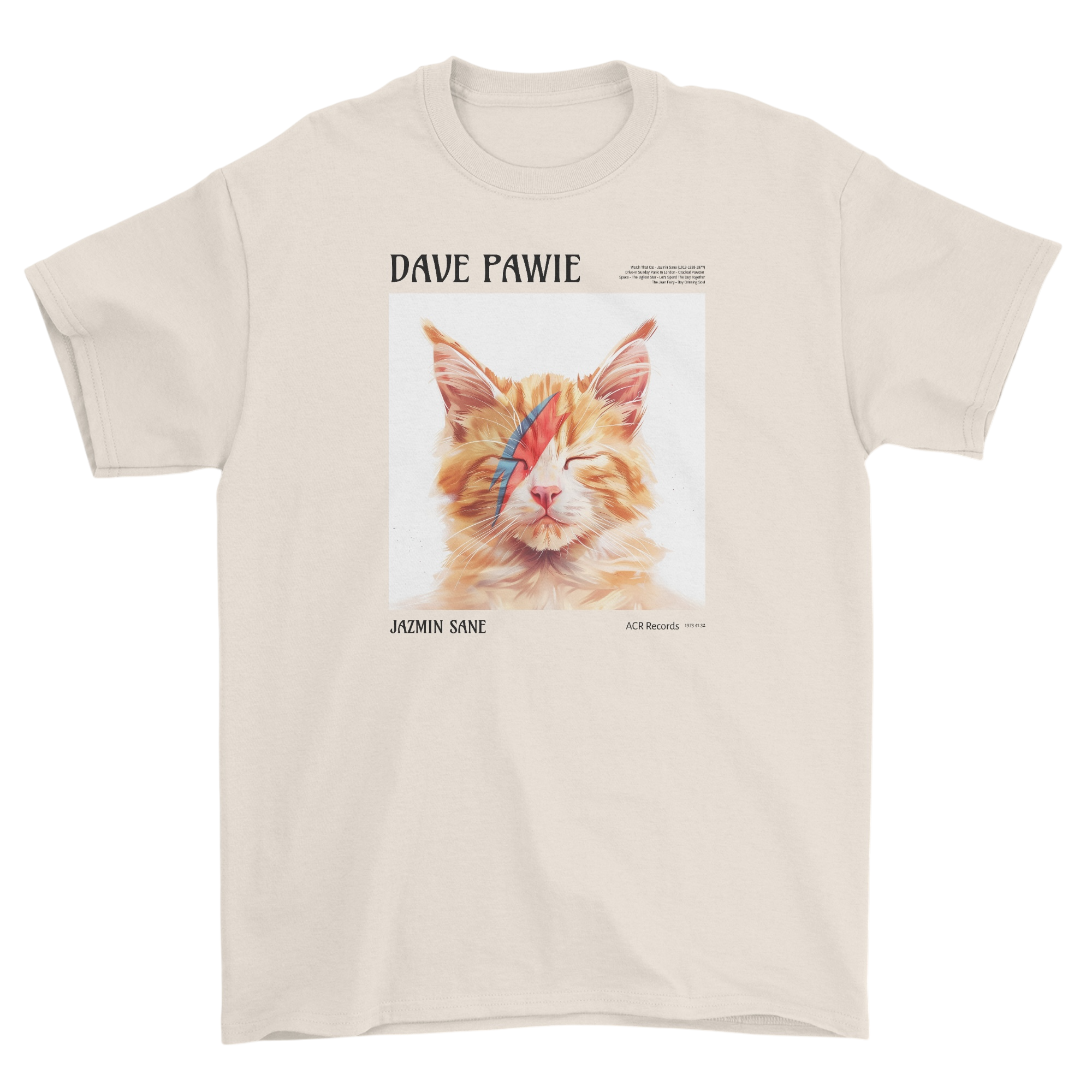 Koszulka z kotem z błyskawicą na twarzy - parodia David Bowie