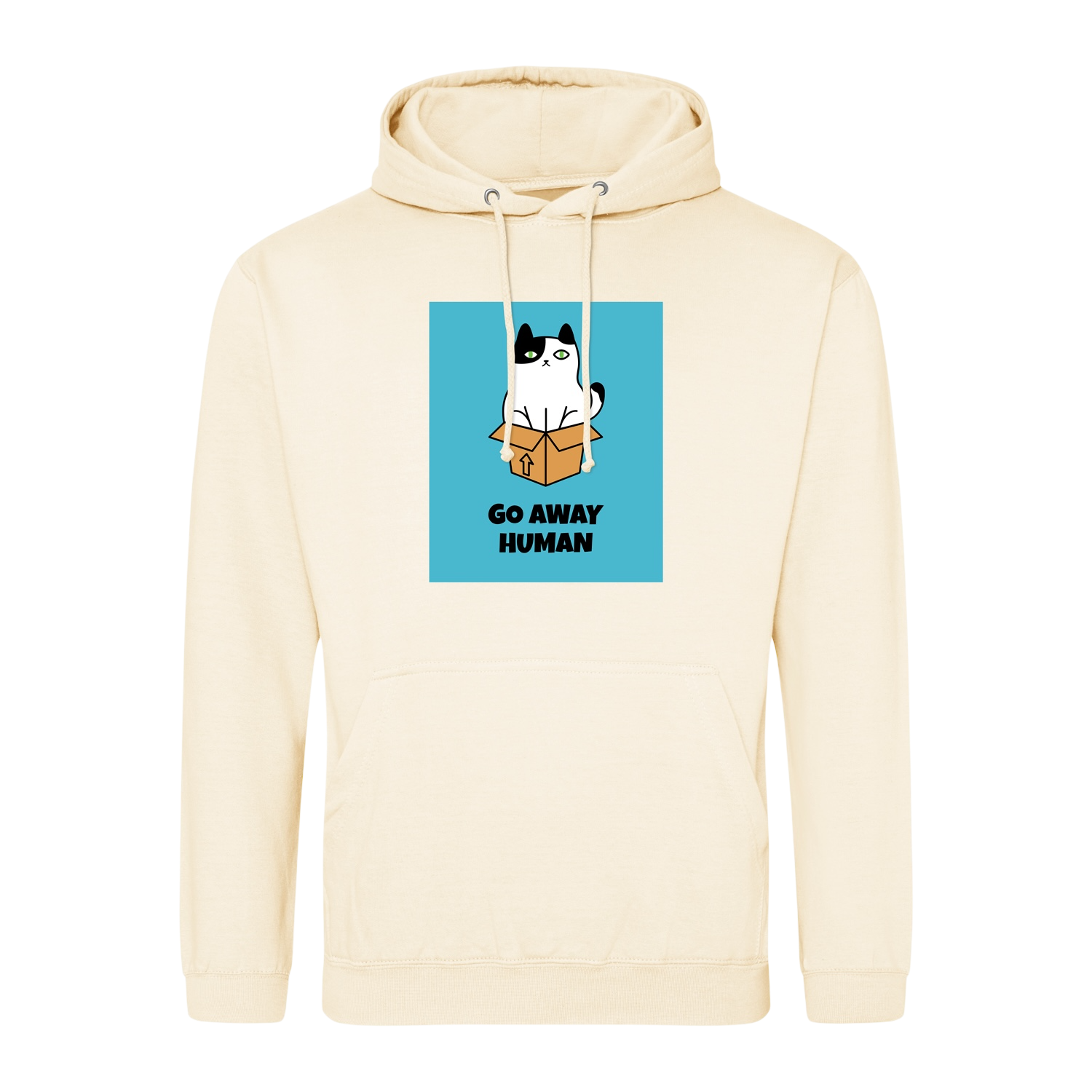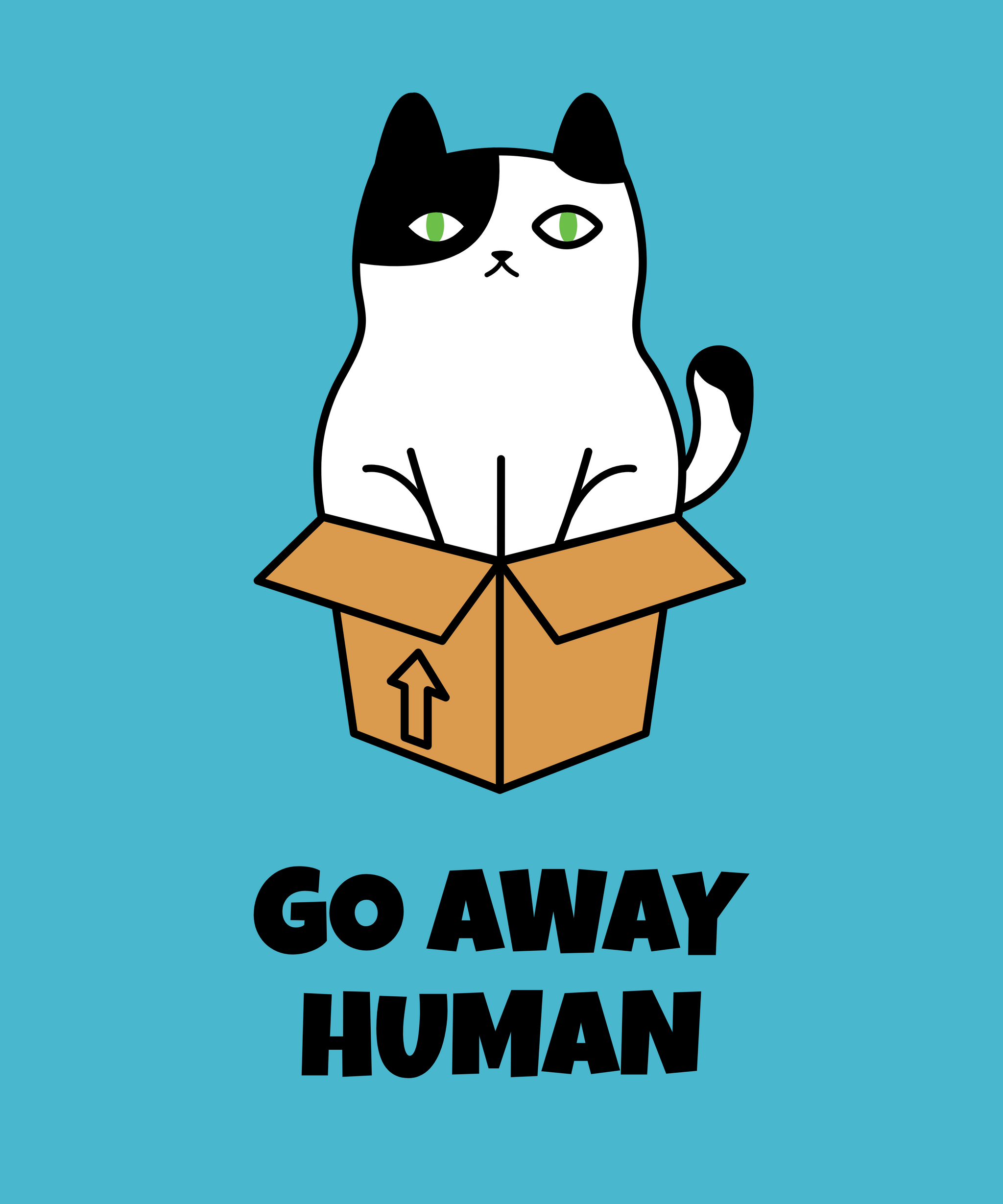 Był sobie kot, który w swoim życiu cenił jedną rzecz ponad wszystko – ŚWIĘTY SPOKÓJ. Gdy człowiek nieustannie przeszkadzał w jego majestatycznym kontemplowaniu kartonowego królestwa, postanowił powiedzieć to wprost: „Go Away, Human”. I tak narodził się symbol kociej niezależności i bezkompromisowości.