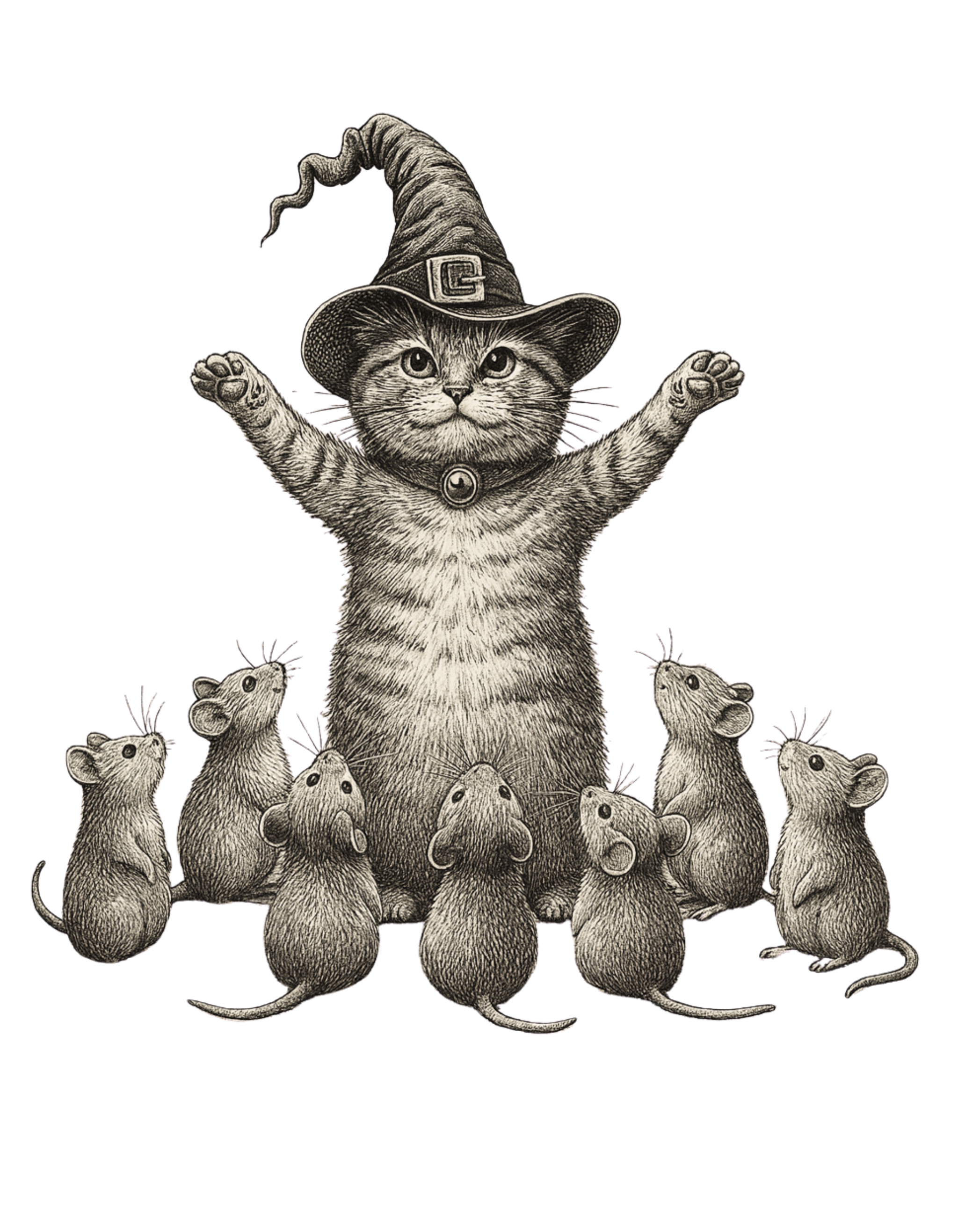 Kot Mistrz Magii naucza je sztuczek, które łamią zasady zwykłego świata: sprawia, że ser wylewa się w rytmie jazzowej improwizacji, każe księżycowi tańczyć po dachach, a cień w kącie sali – odważnie podąża za jego wskazówkami. Myszy patrzą uważnie, wiedząc, że w tym niepozornym futrzaku kryje się mistrz surrealizmu i przewrotnej mądrości.