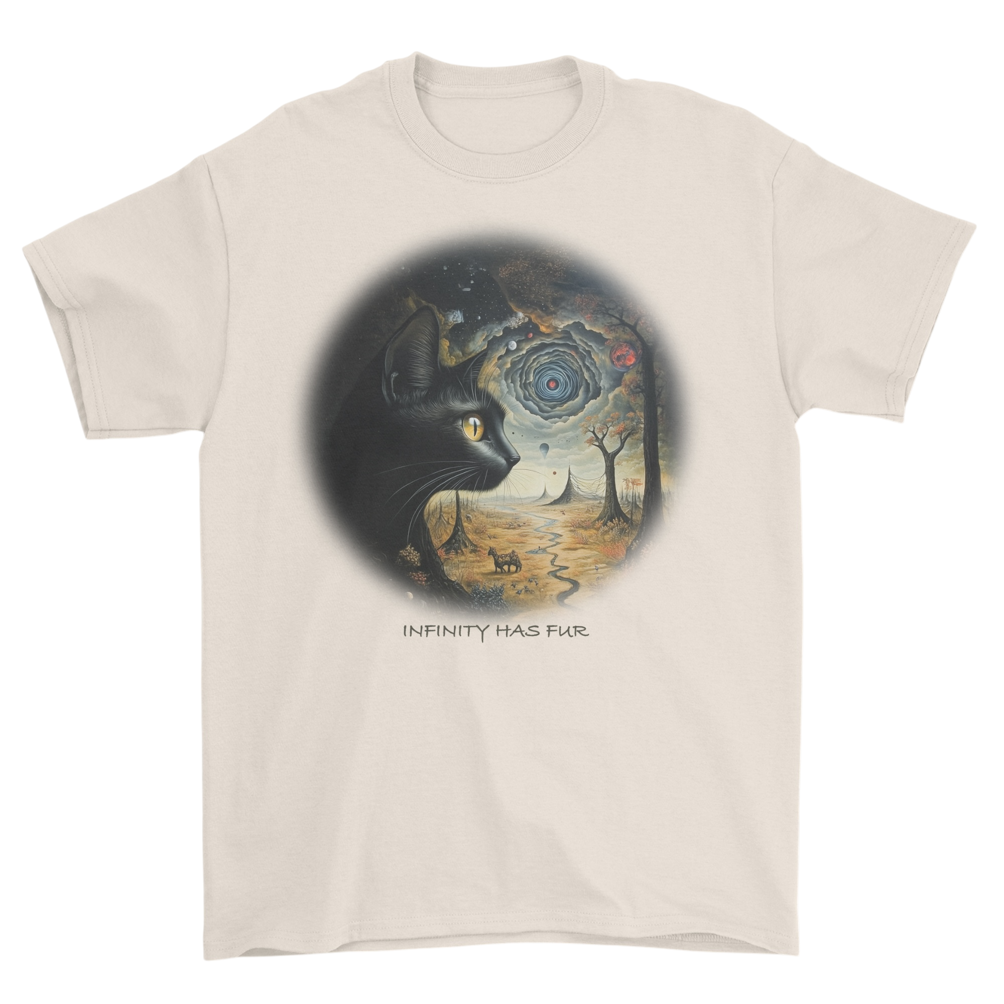Ta koszulka "INFINITY HAS FUR" to więcej niż ubranie – to przypomnienie, że w każdym mruczeniu, każdym kocim spojrzeniu kryje się odrobina magii. Noś ją, by odkryć swoje własne nieskończoności i pozwolić się prowadzić tam, gdzie tylko koty potrafią – w miejsca, o których istnieniu nawet nie śniłeś.