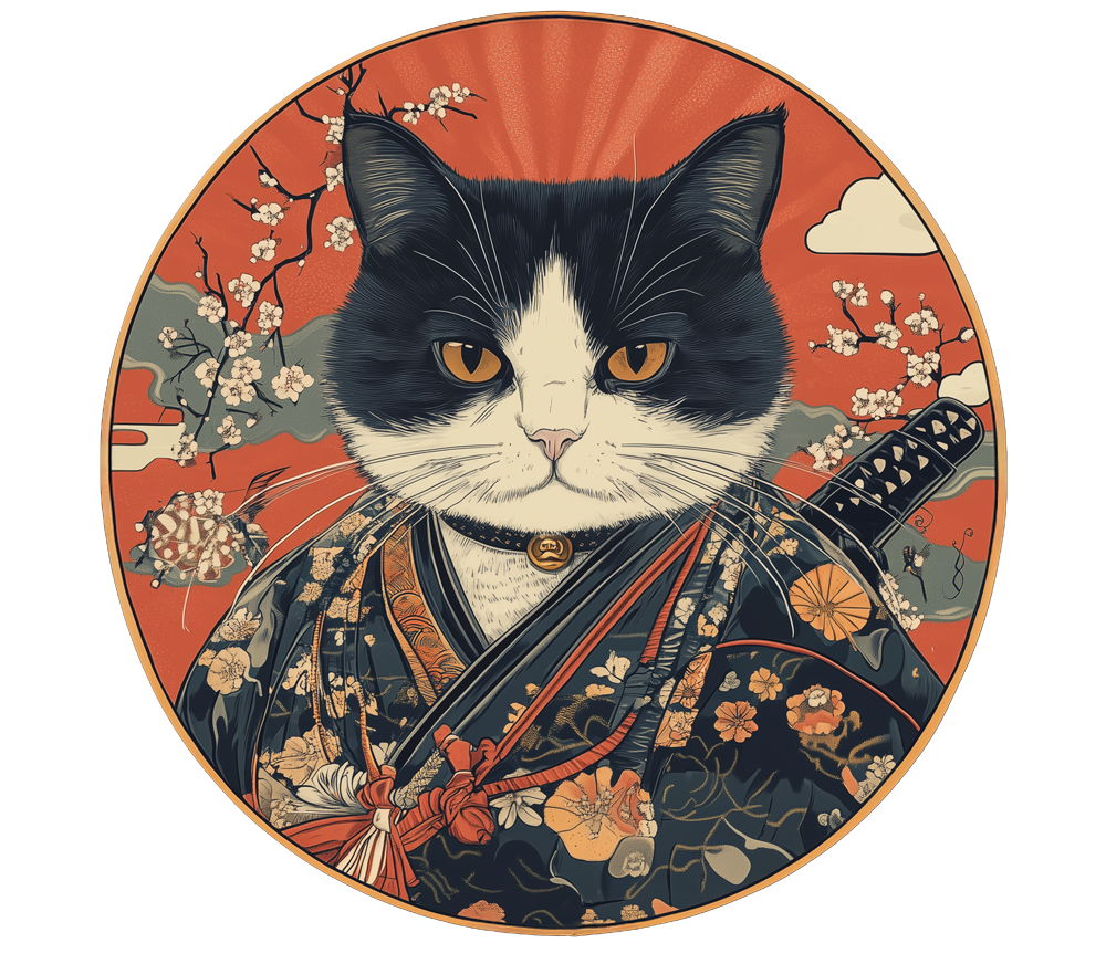 W odległej dolinie, otoczonej kwitnącymi wiśniami i spowitej mgłą poranka, mieszkał kot, którego imię stało się legendą – Kensei Neko. Jego ścieżka nie była zwyczajna, bo zamiast podążać za instynktem, wybrał drogę samuraja, gdzie honor, odwaga i harmonia z naturą były najważniejsze.