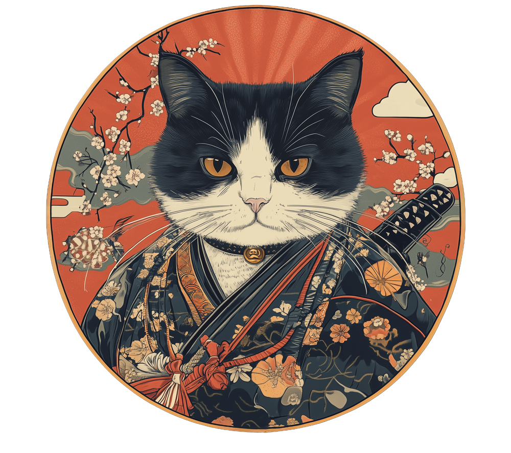 W odległej dolinie, otoczonej kwitnącymi wiśniami i spowitej mgłą poranka, mieszkał kot, którego imię stało się legendą – Kensei Neko. Jego ścieżka nie była zwyczajna, bo zamiast podążać za instynktem, wybrał drogę samuraja, gdzie honor, odwaga i harmonia z naturą były najważniejsze.