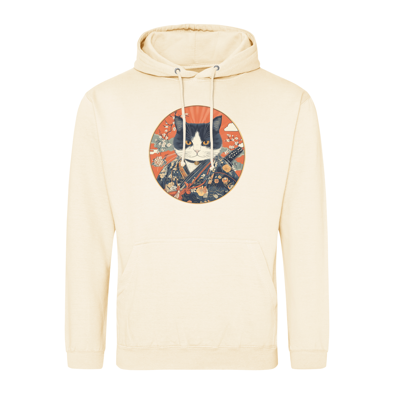 Bluza z kotem wojownikiem z mieczem wiśnie - japoński kot samuraj neko