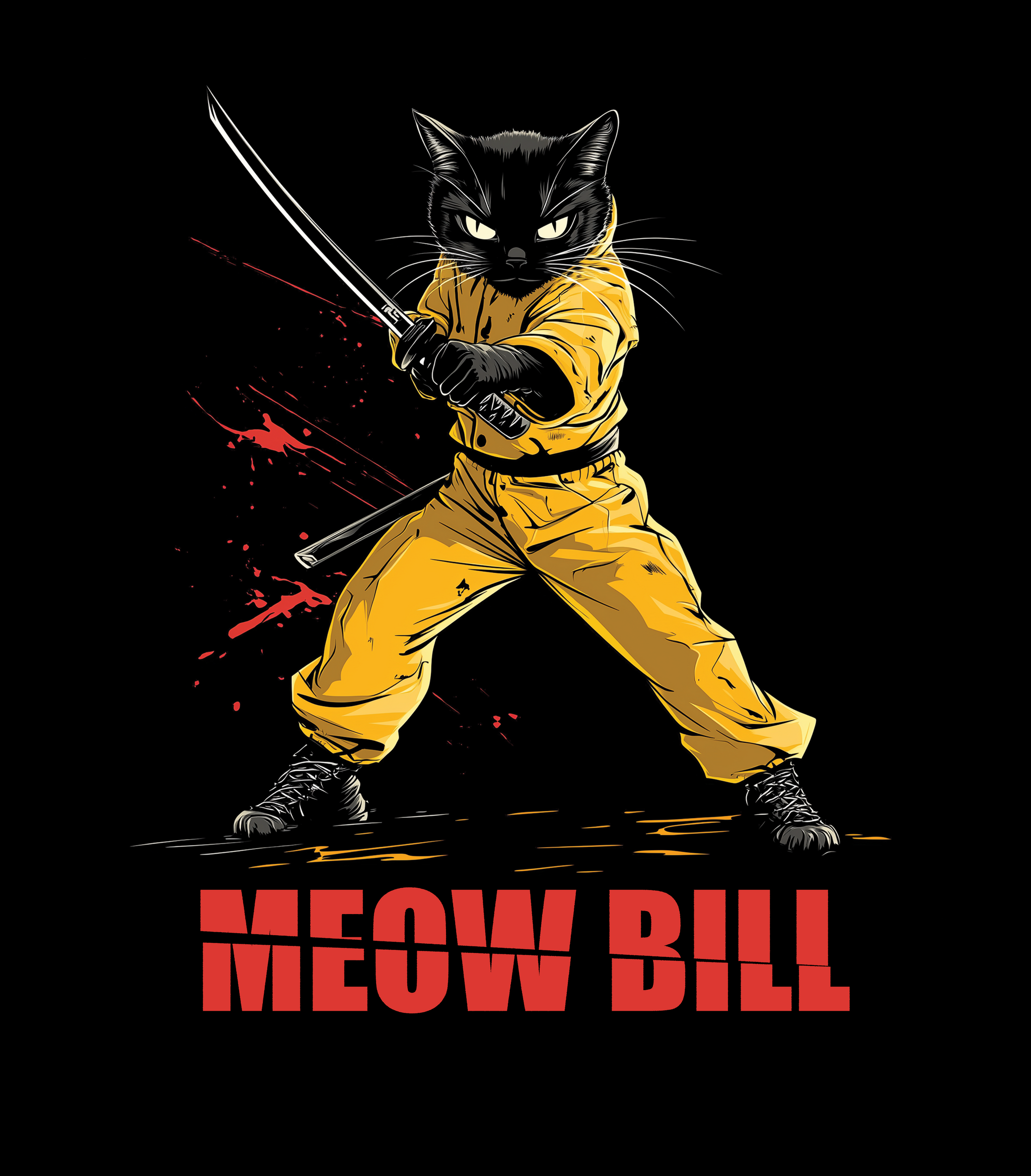 Z żółtym kombinezonem, kataną i groźnym spojrzeniem – MEOW BILL nie bierze jeńców.
