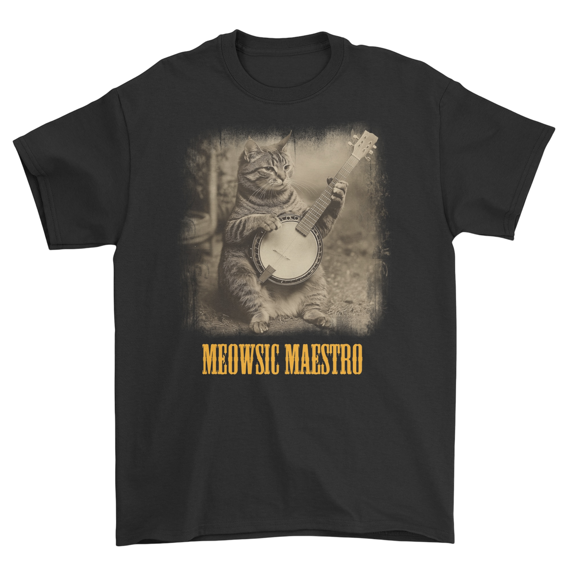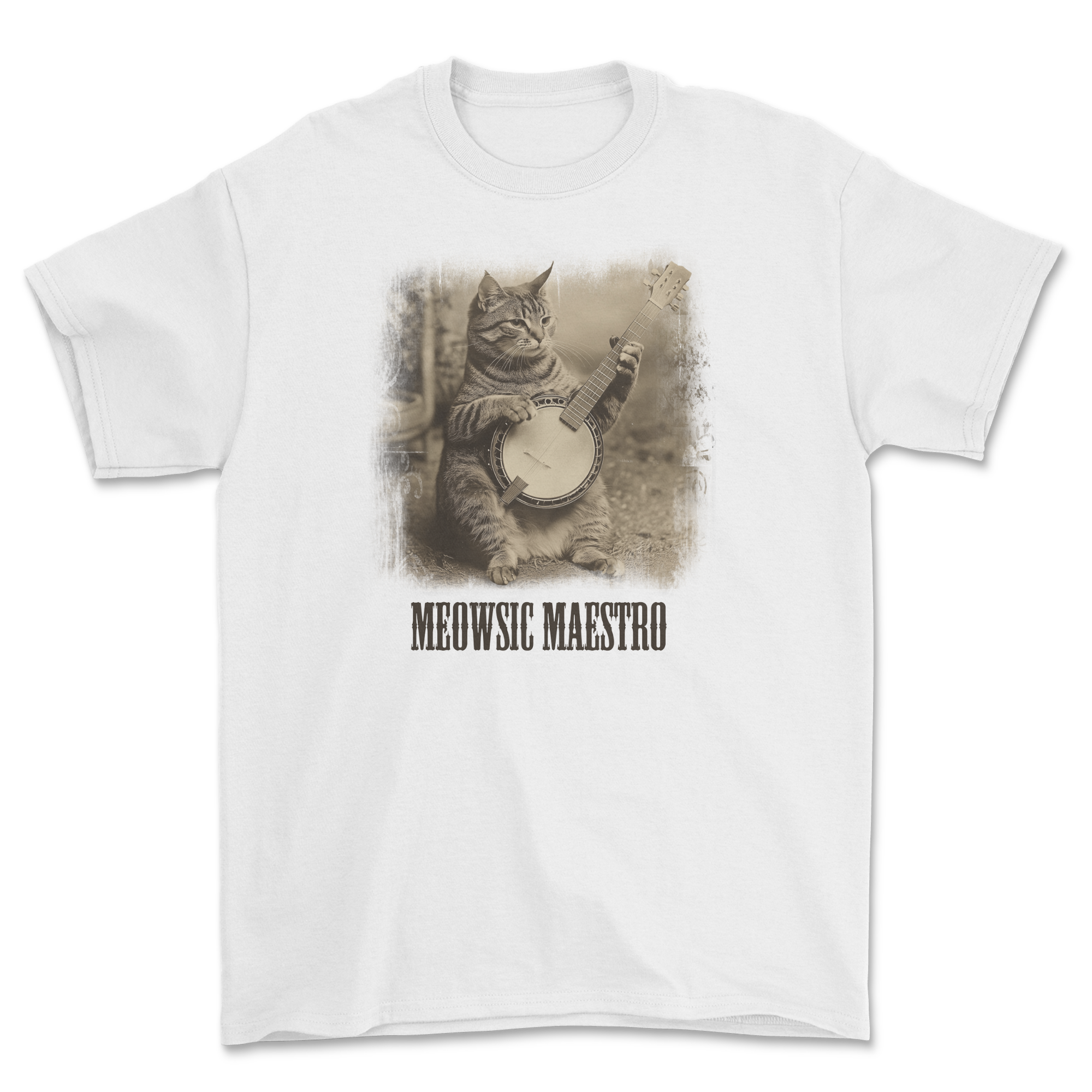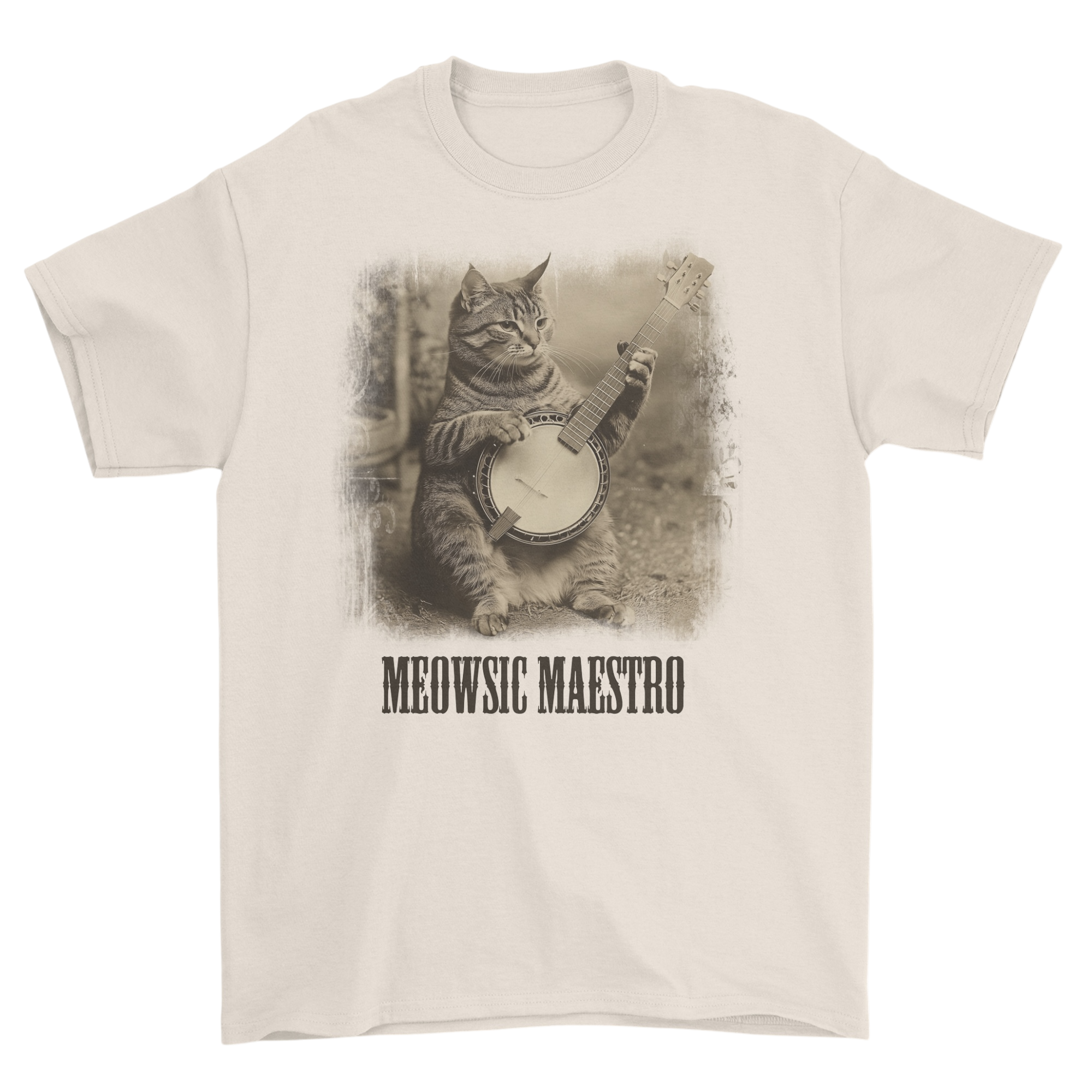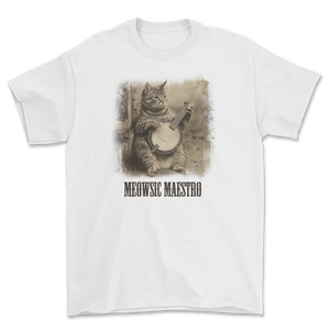 Koszulka z kotem grającym na banjo vintage - kot muzyk retro