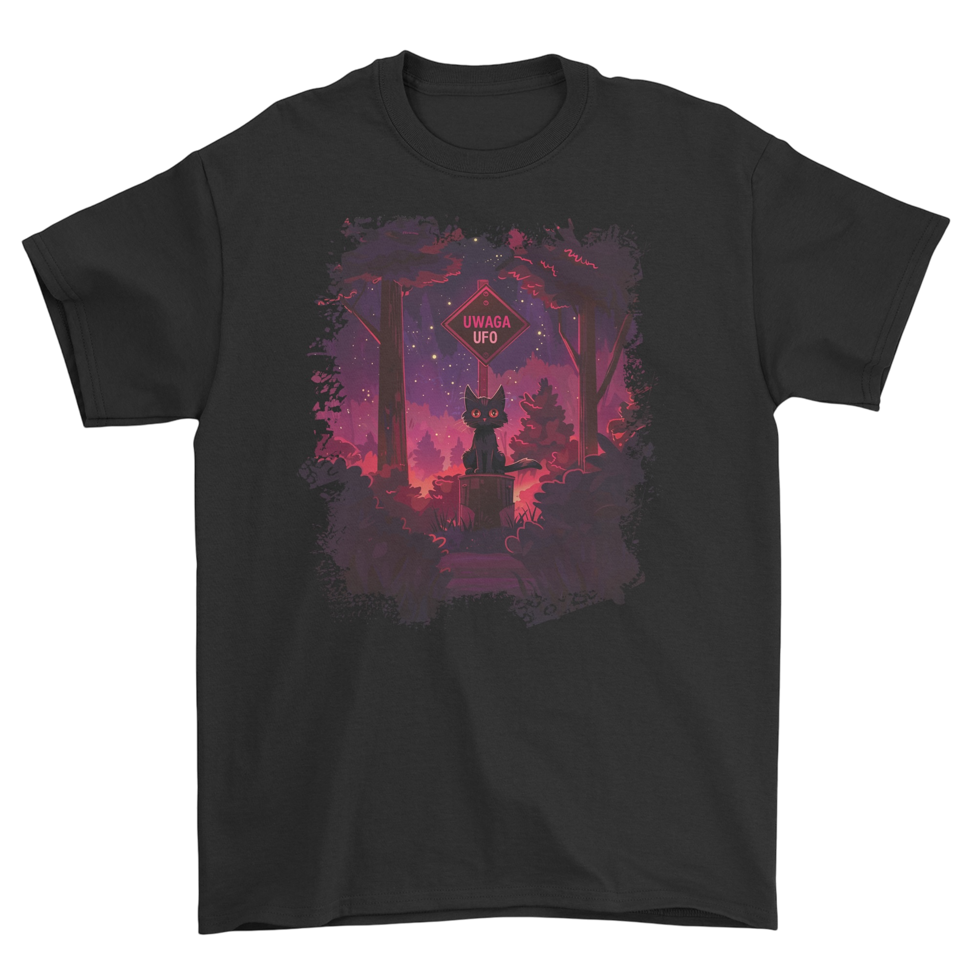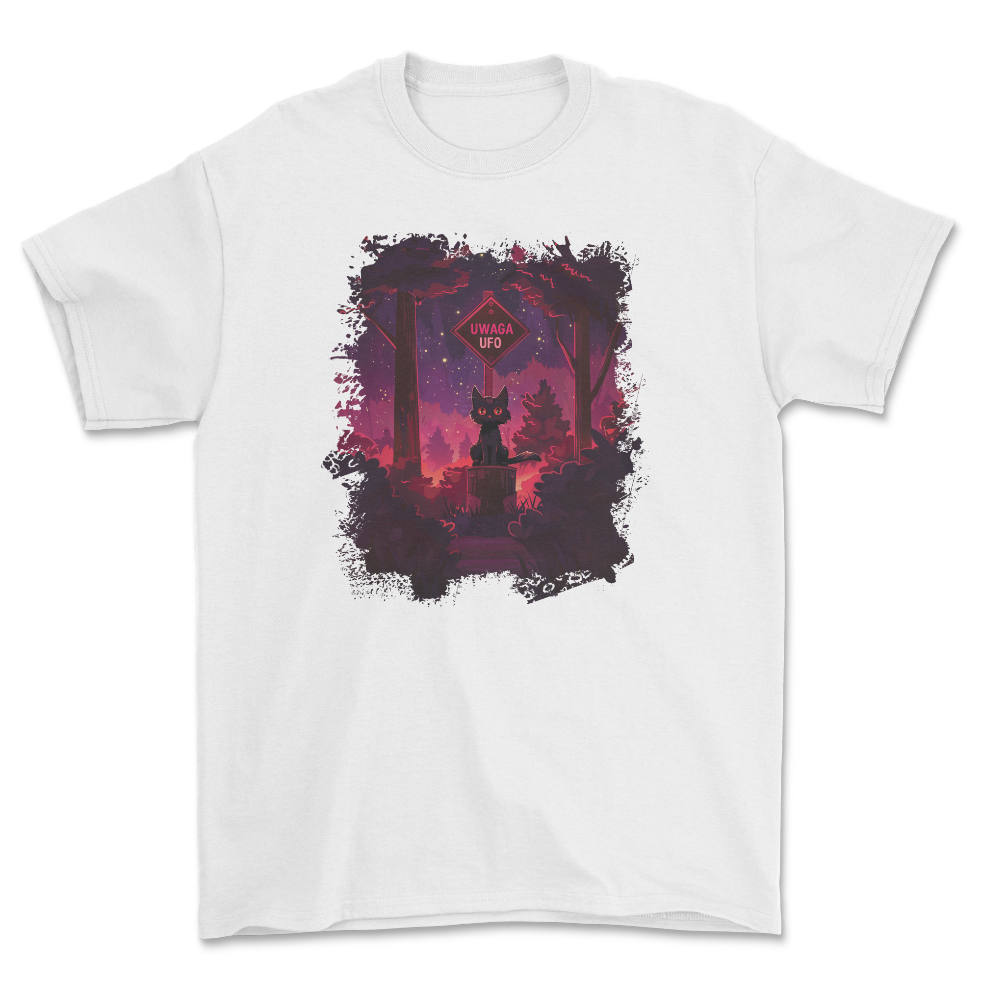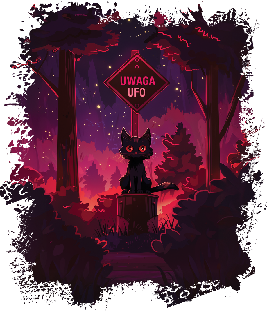 To zawsze zaczyna się od ciszy. Tego rodzaju ciszy, która zapada tuż przed czymś niezwykłym. W samym środku mrocznego lasu, na starej drewnianej beczce, siedzi on – czarny kot, patrzący w górę, jakby czekał na coś, co zaraz nadejdzie. Nad jego głową znak ostrzega: „Uwaga UFO”. Ale kto kogo powinien ostrzegać?