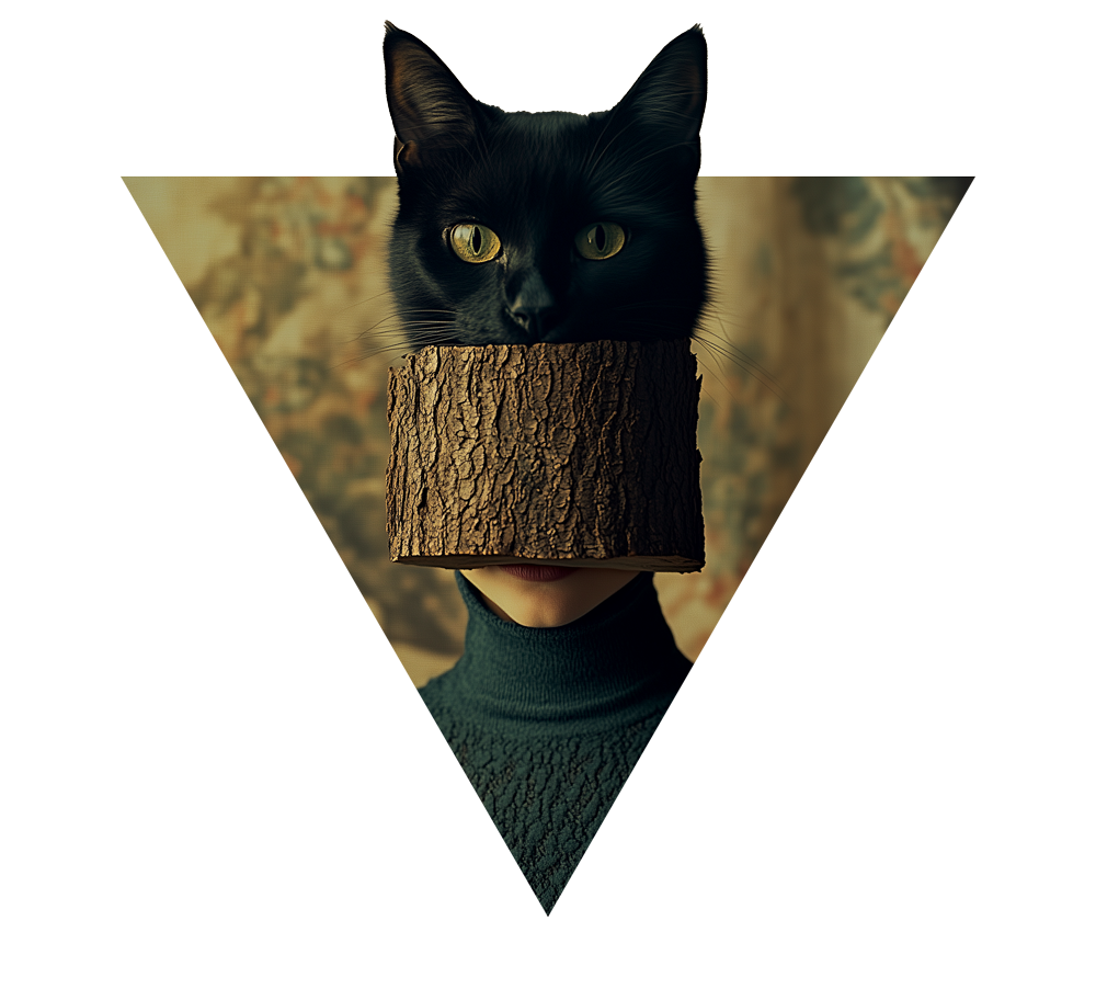 Czy pień jest kluczem do innego wymiaru? Czy stanowi schronienie przed światem? A może to po prostu kocie wyczucie stylu? Nikt nie zna odpowiedzi, tak jak nikt nie znał sekretów Kobiety z Pieńkiem. Kot patrzy na nas z głęboką powagą, a jego obecność jest zarówno zabawna, jak i enigmatyczna.
