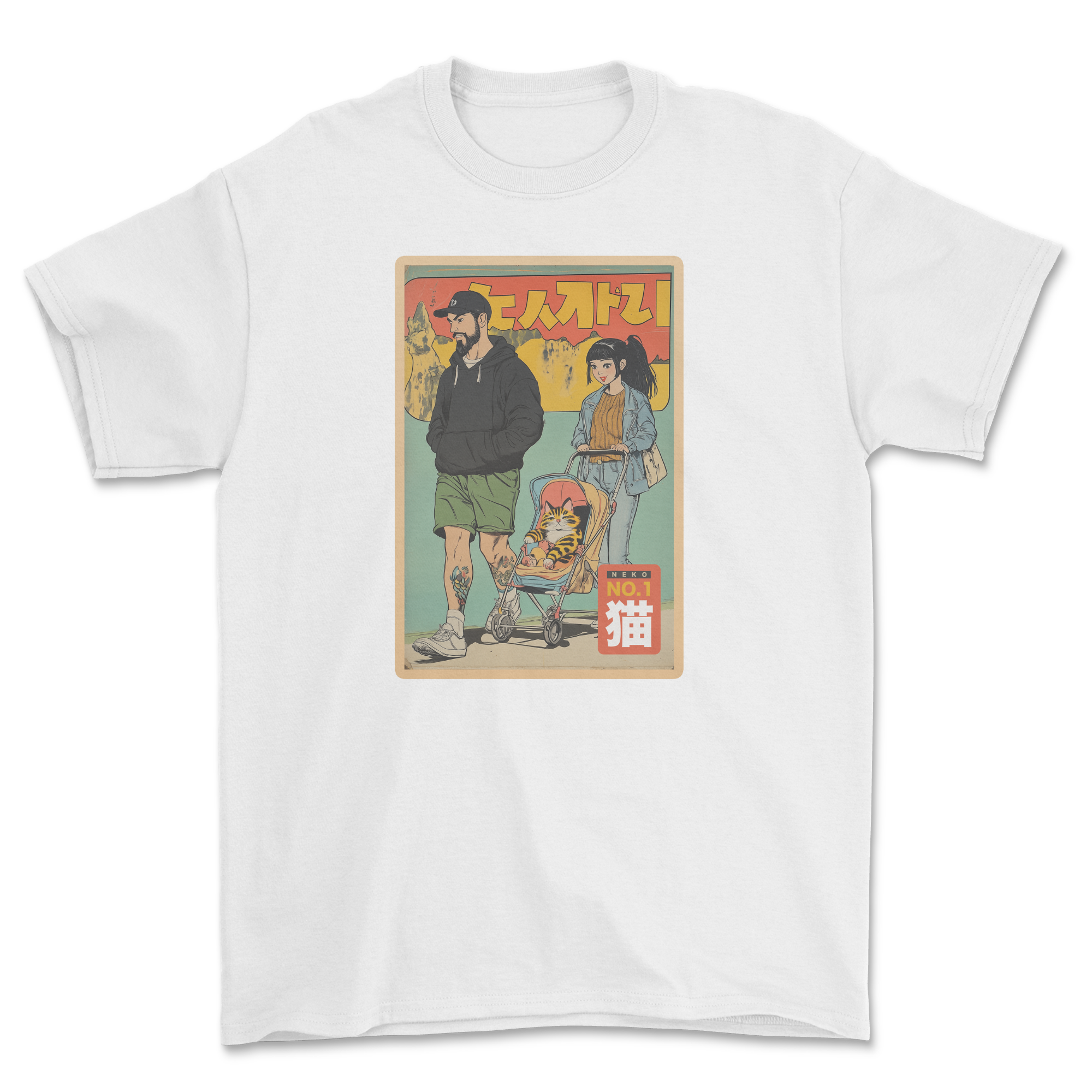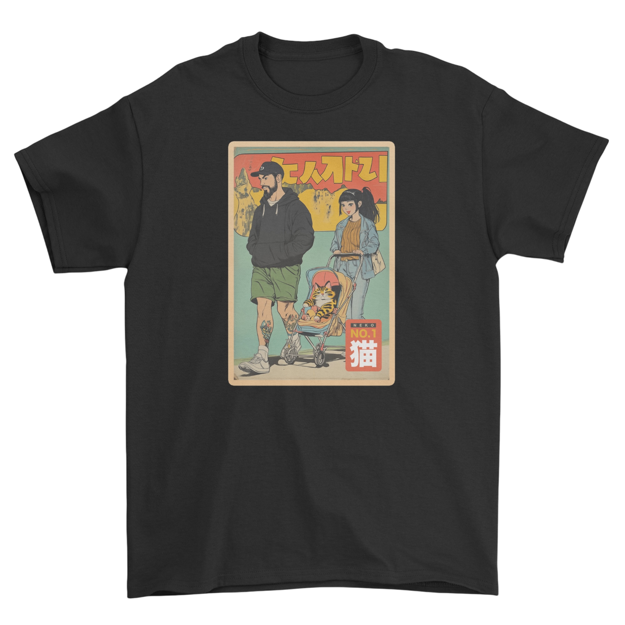 Koszulka z kotem w wózku japońska rodzina - stylowy kot neko
