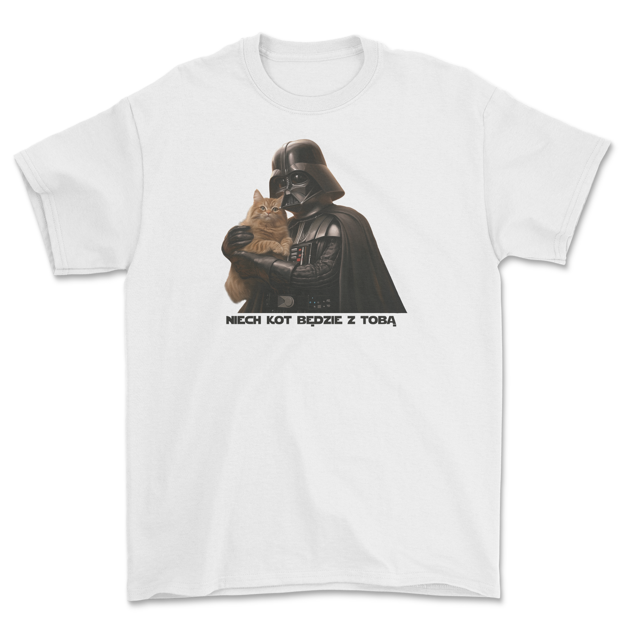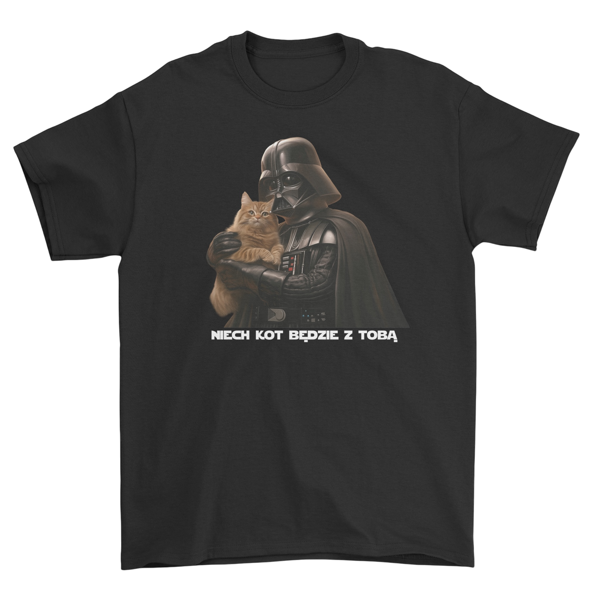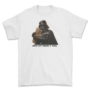 Ta koszulka to idealny wybór dla miłośników kotów i fanów "Gwiezdnych Wojen". Połącz siłę Mocy z urokiem kociego mruczenia – bo w każdej galaktyce koty zawsze rządzą! ✨