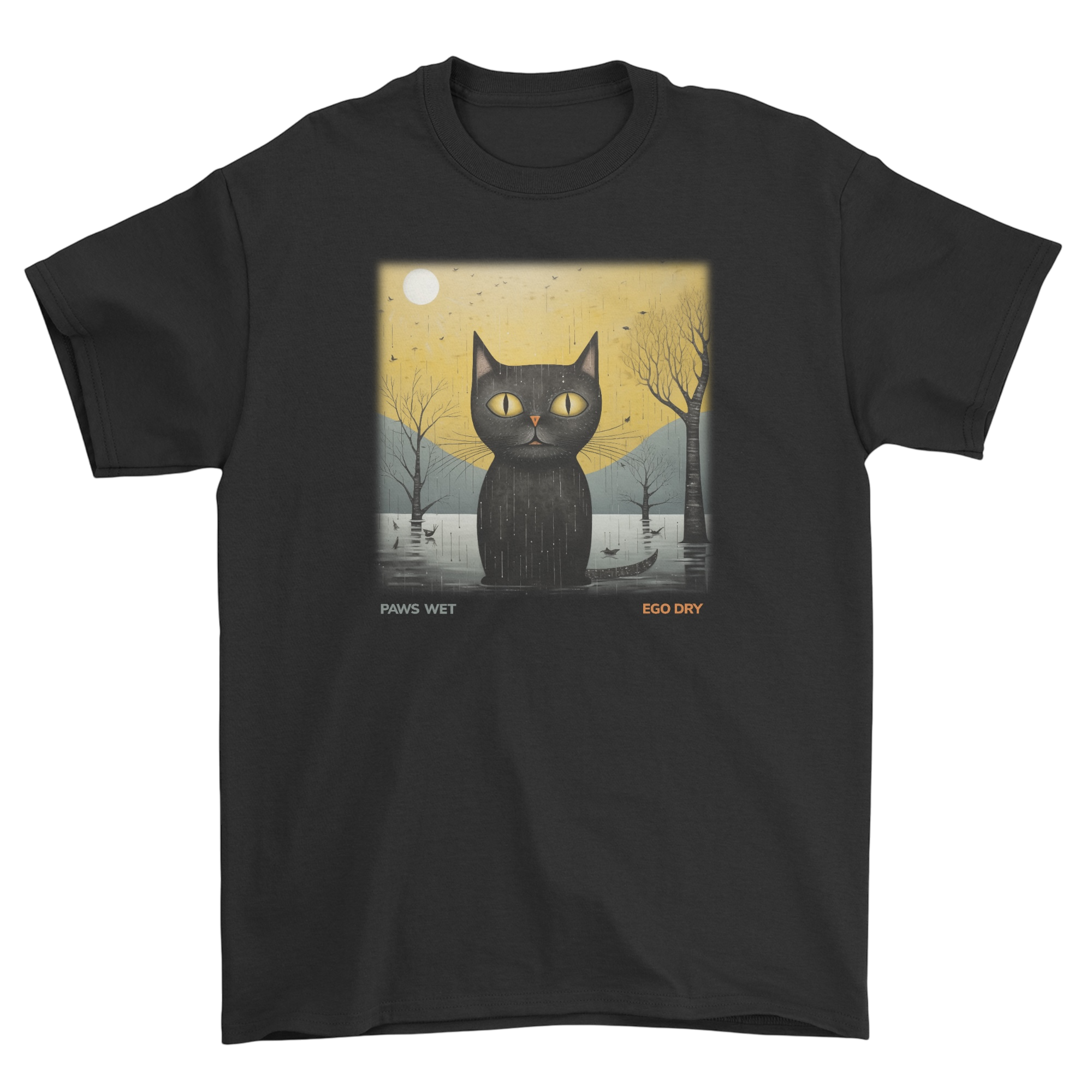 "Paws Wet, Ego Dry" to koszulka dla tych, którzy stawiają czoła codziennym wyzwaniom z gracją i dystansem. Inspirowana kocim spokojem i pogodną dumą, jest idealna dla tych, którzy wiedzą, że czasem życie bywa mokre, ale ich ego zawsze pozostaje nietknięte.