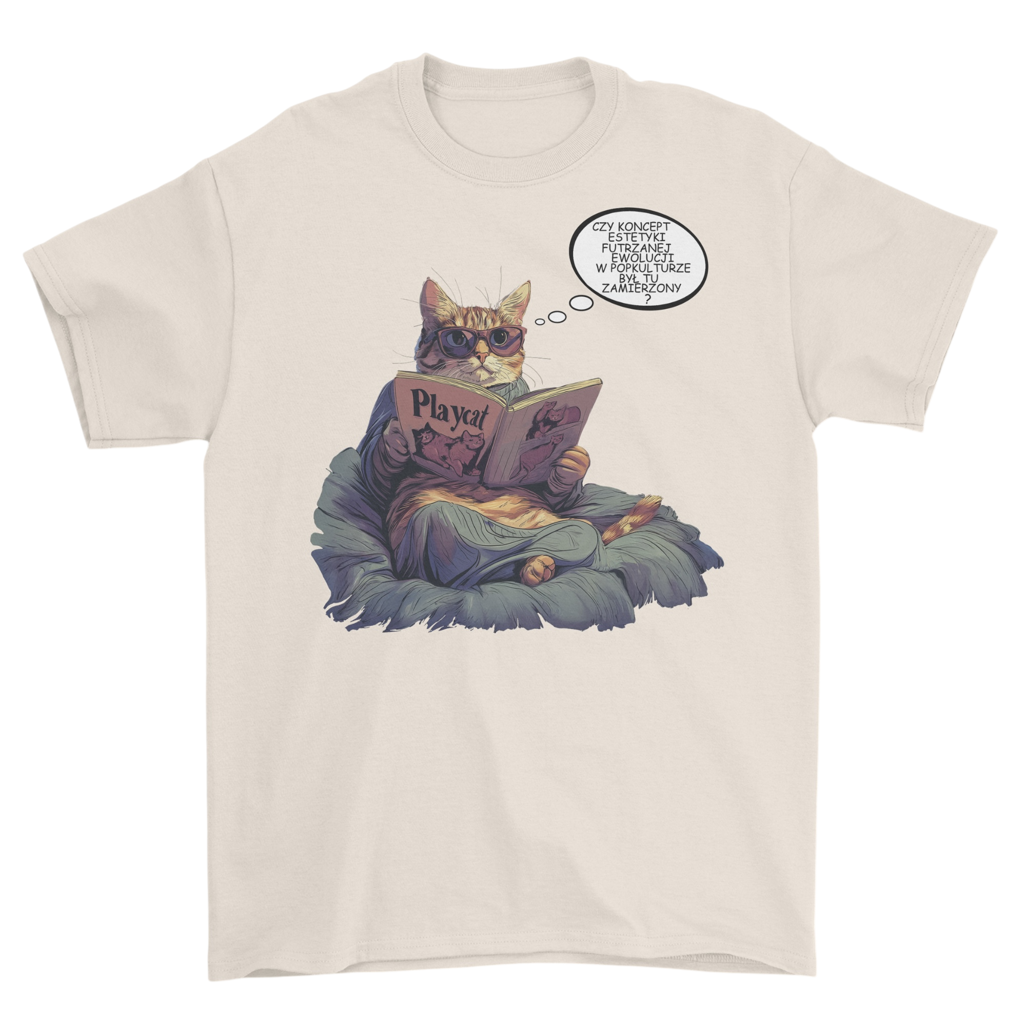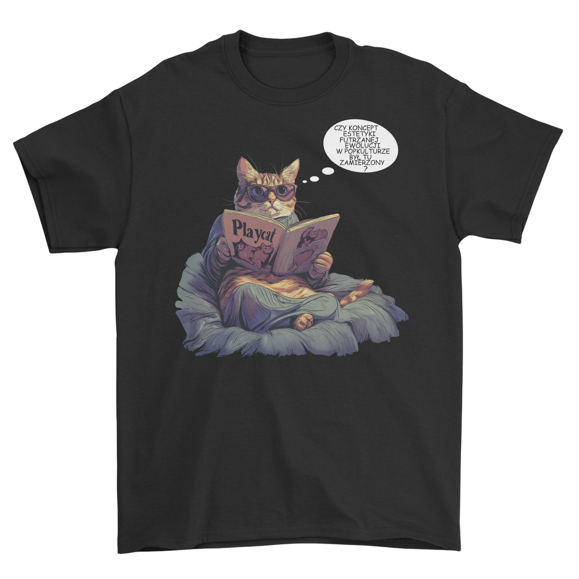 Kto powiedział, że tylko ludzie mają swoje tajemnice? Ten kot wie, jak połączyć intelektualną aurę z odrobiną pikanterii. W swoim aksamitnym fotelu, z nonszalancko założonymi okularami, zaczytuje się w magazynie Playcat – kultowym periodyku dla kocich koneserów futrzanej elegancji i delikatnych konturów... kociej sylwetki.