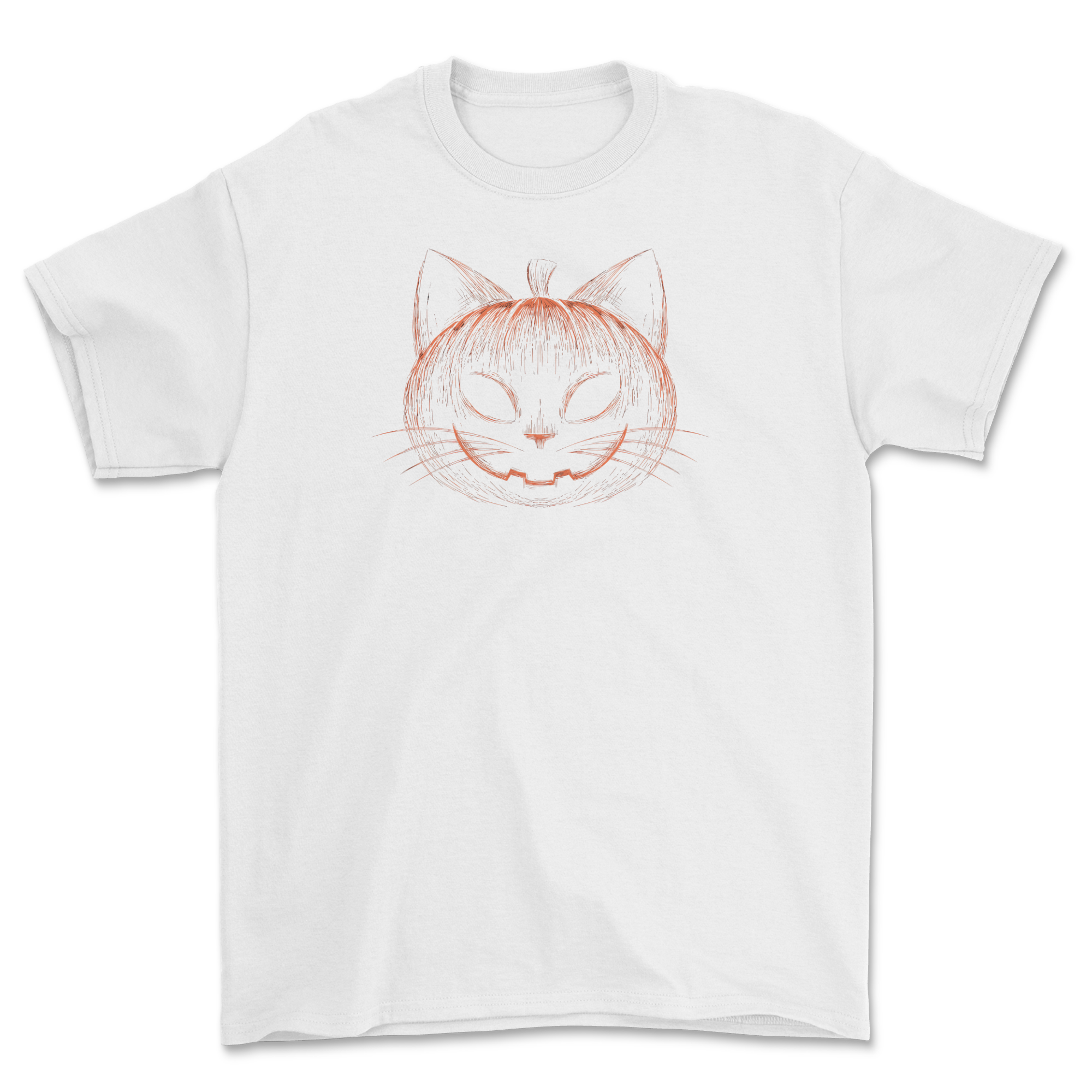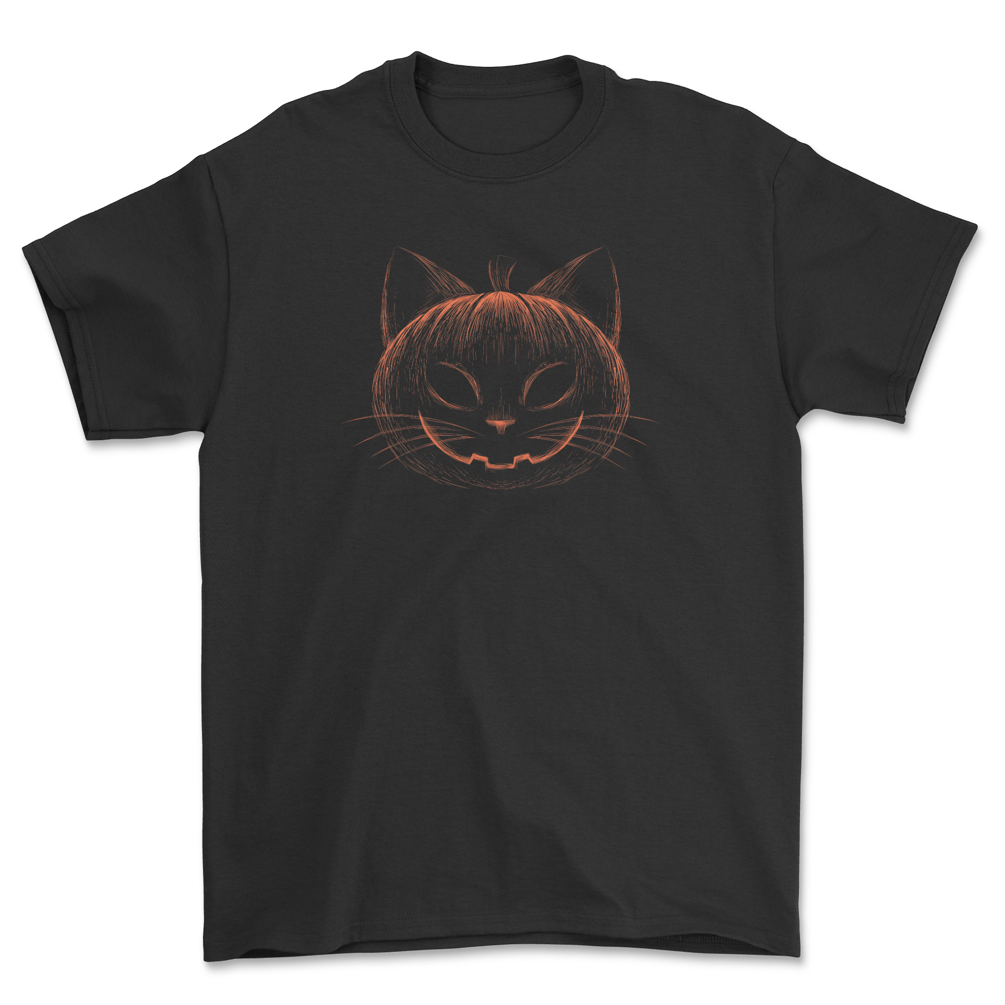 Czy to tylko przebranie, czy naprawdę kot przejął moc dyni? Nikt nie wie – pozostaje tylko jego tajemniczy, koci uśmiech, który mruga z okładki koszulki, jakby opowiadał własną, lekko złowieszczą historię Halloween.