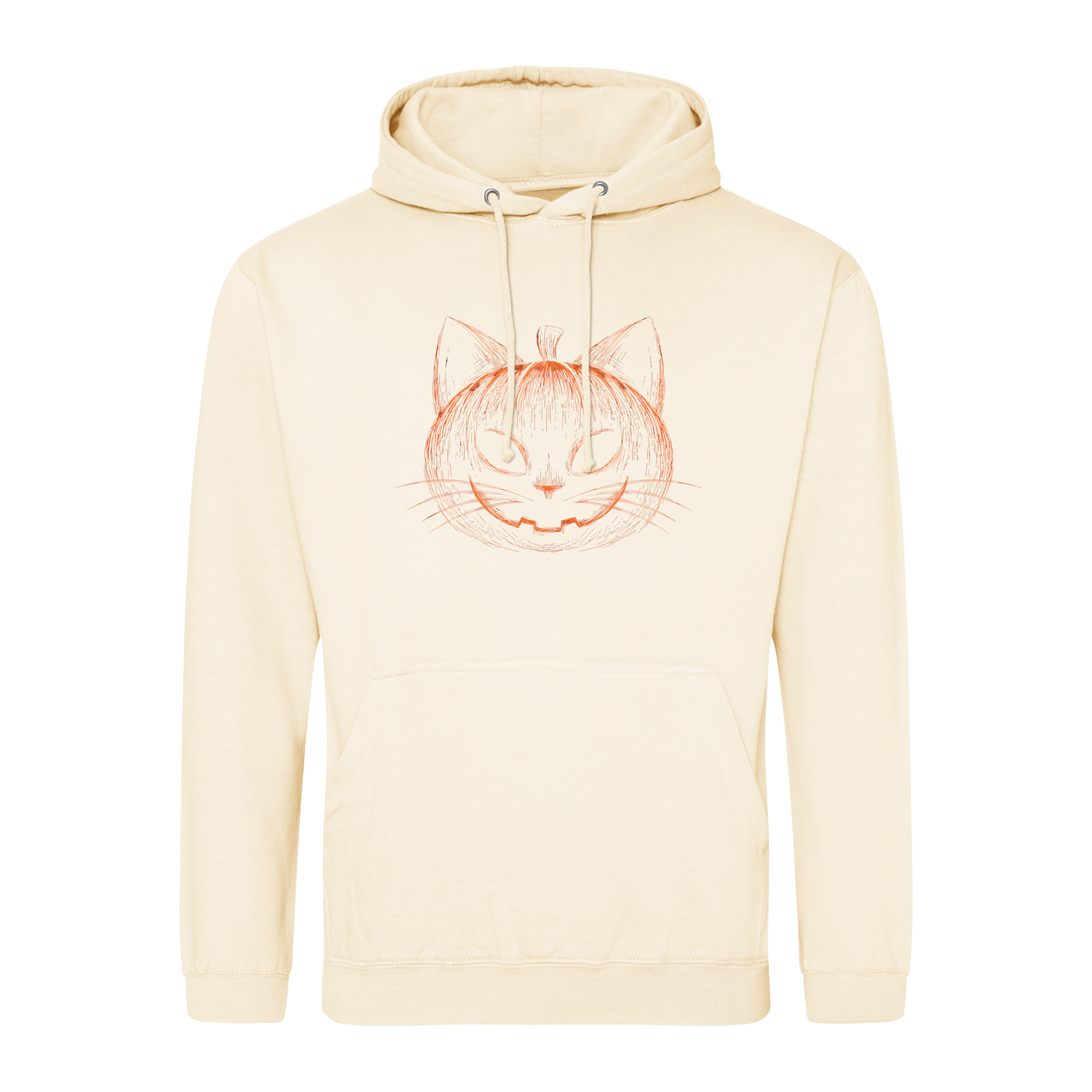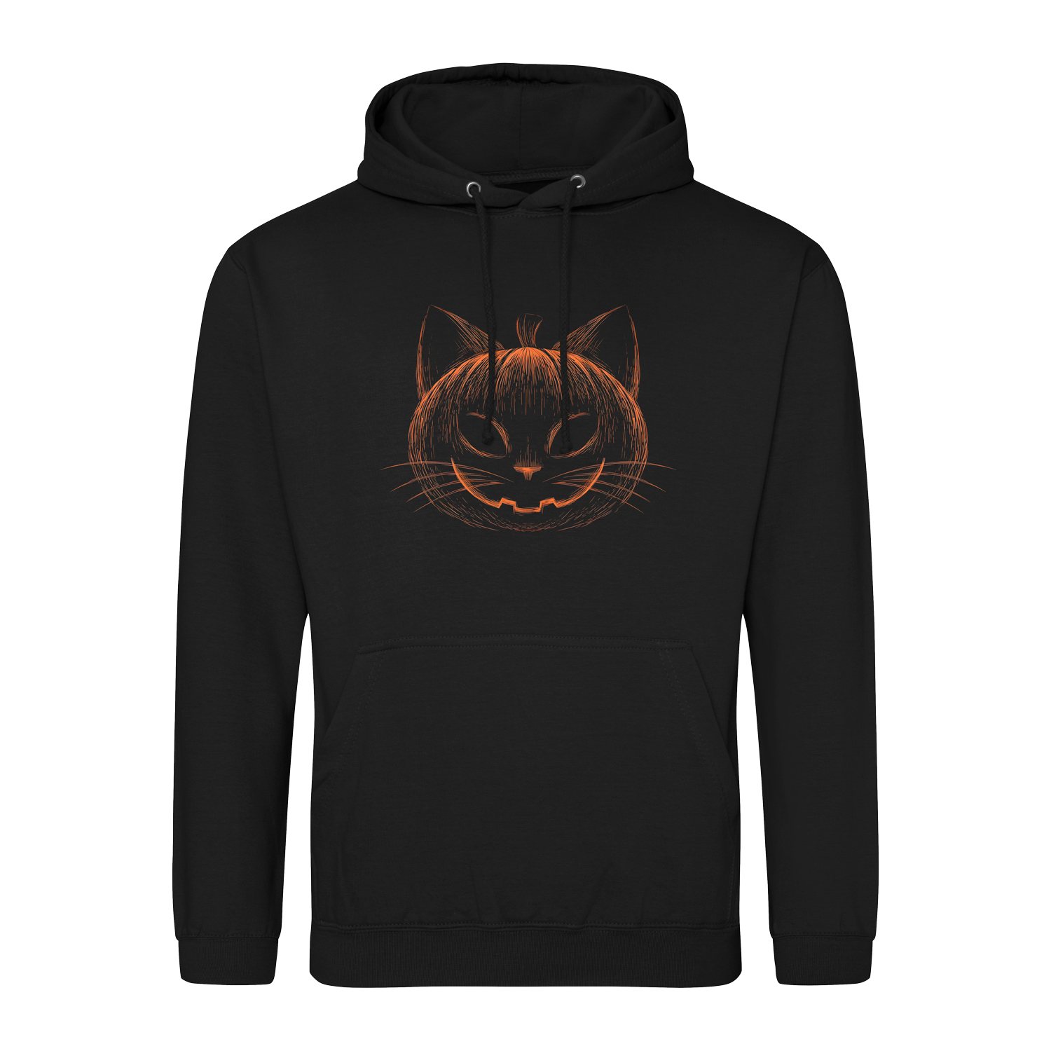 Czy to tylko przebranie, czy naprawdę kot przejął moc dyni? Nikt nie wie – pozostaje tylko jego tajemniczy, koci uśmiech, który mruga z okładki koszulki, jakby opowiadał własną, lekko złowieszczą historię Halloween.