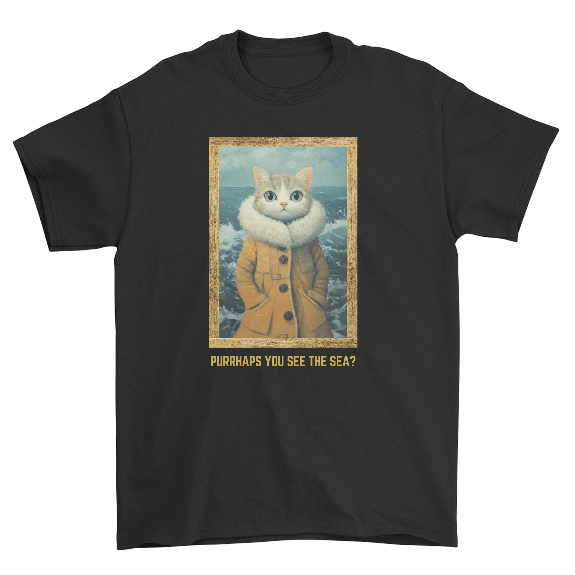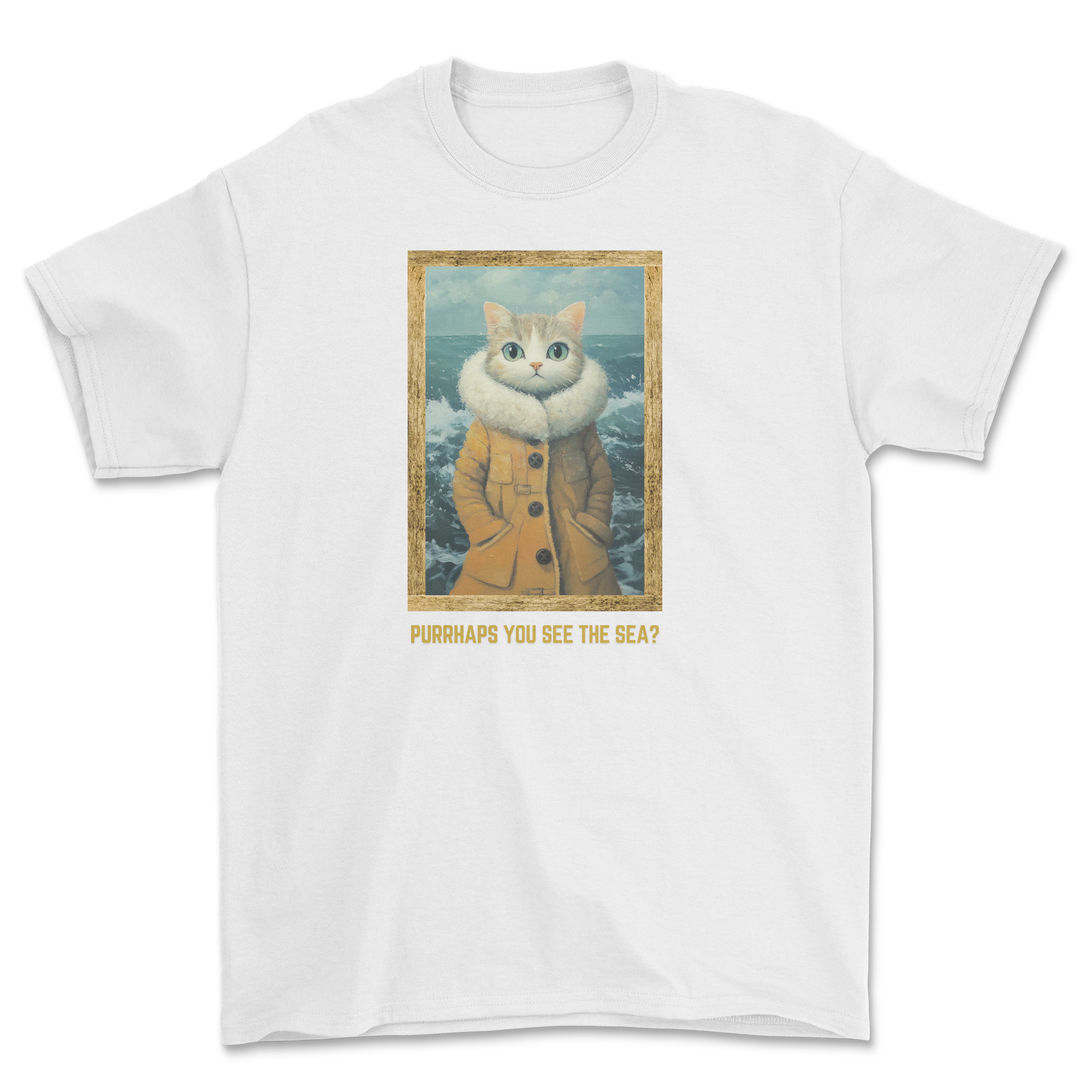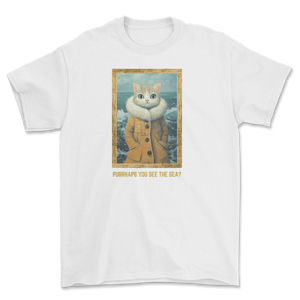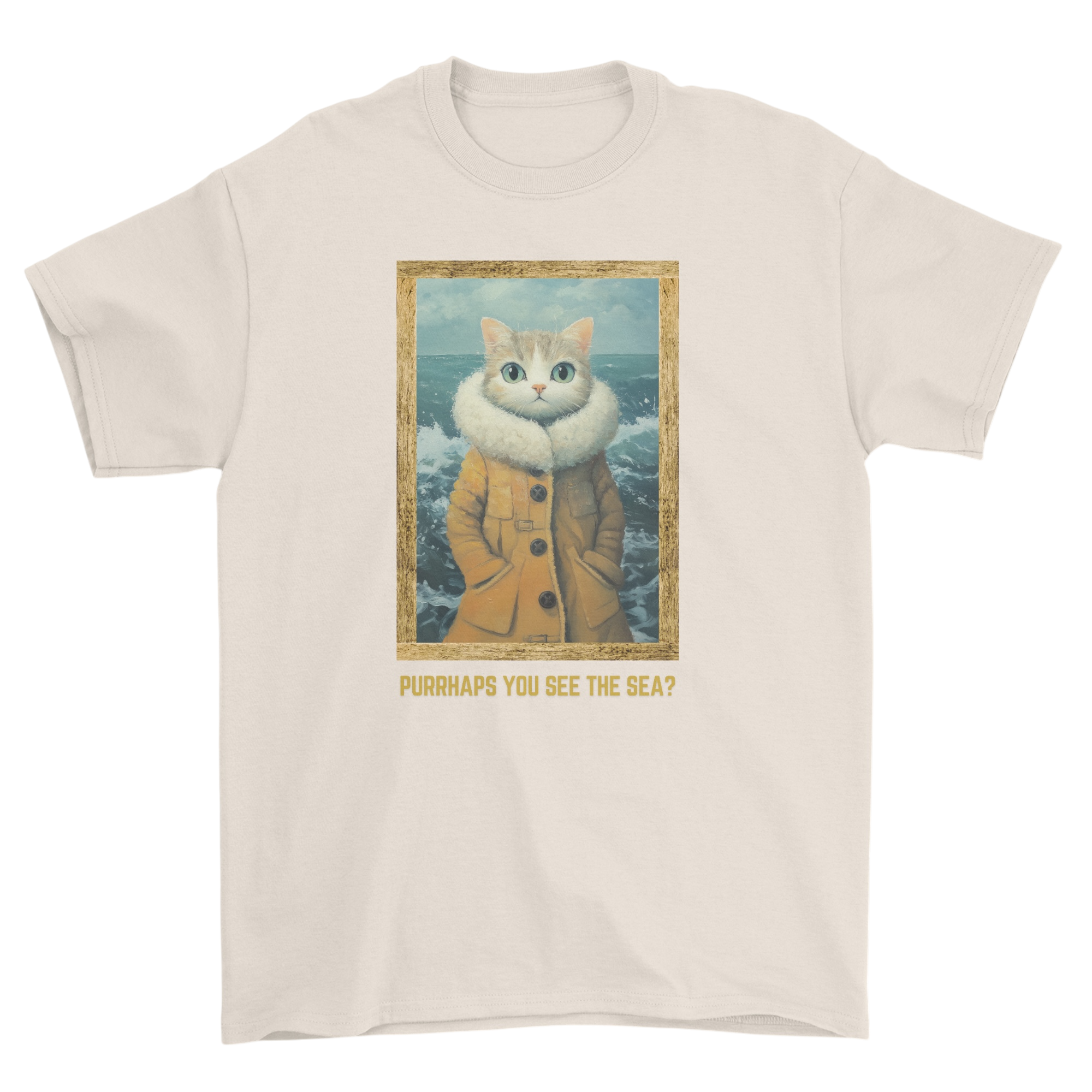 "Purrhaps You See the Sea" to koszulka dla tych, którzy czują miłość do fal i mruczenia. Nadruk przenosi Cię w świat kociej wyprawy, w którym każdy podmuch wiatru to obietnica nowej przygody. Wykonana z najwyższej jakości materiałów, gwarantuje komfort i styl – zarówno na lądzie, jak i podczas morskich wypraw... w wyobraźni.