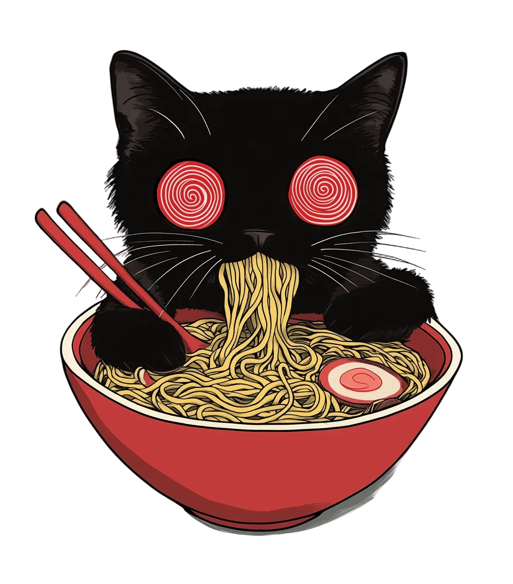 Legenda głosi, że każdy, kto zje ramen i spojrzy w spiralne oczy Ramen Neko, otrzymuje inspirację i energię do spełnienia swoich najgłębszych marzeń. Ale uwaga – tylko ci, którzy potrafią docenić sztukę gotowania i duchowy wymiar smaku, zostają obdarzeni tym darem.