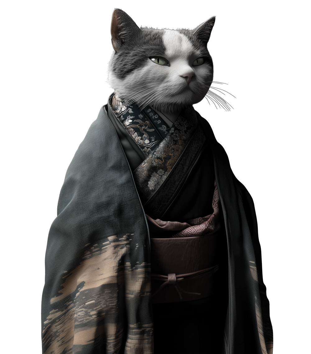 W cieniu gór i świątyń pojawia się Samurai Neko – kot o spojrzeniu ostrym jak miecz i futrze w kolorze mgły. Jego kimono, zdobione symbolami klanu, opowiada historię wojownika, który strzeże zasad bushido.