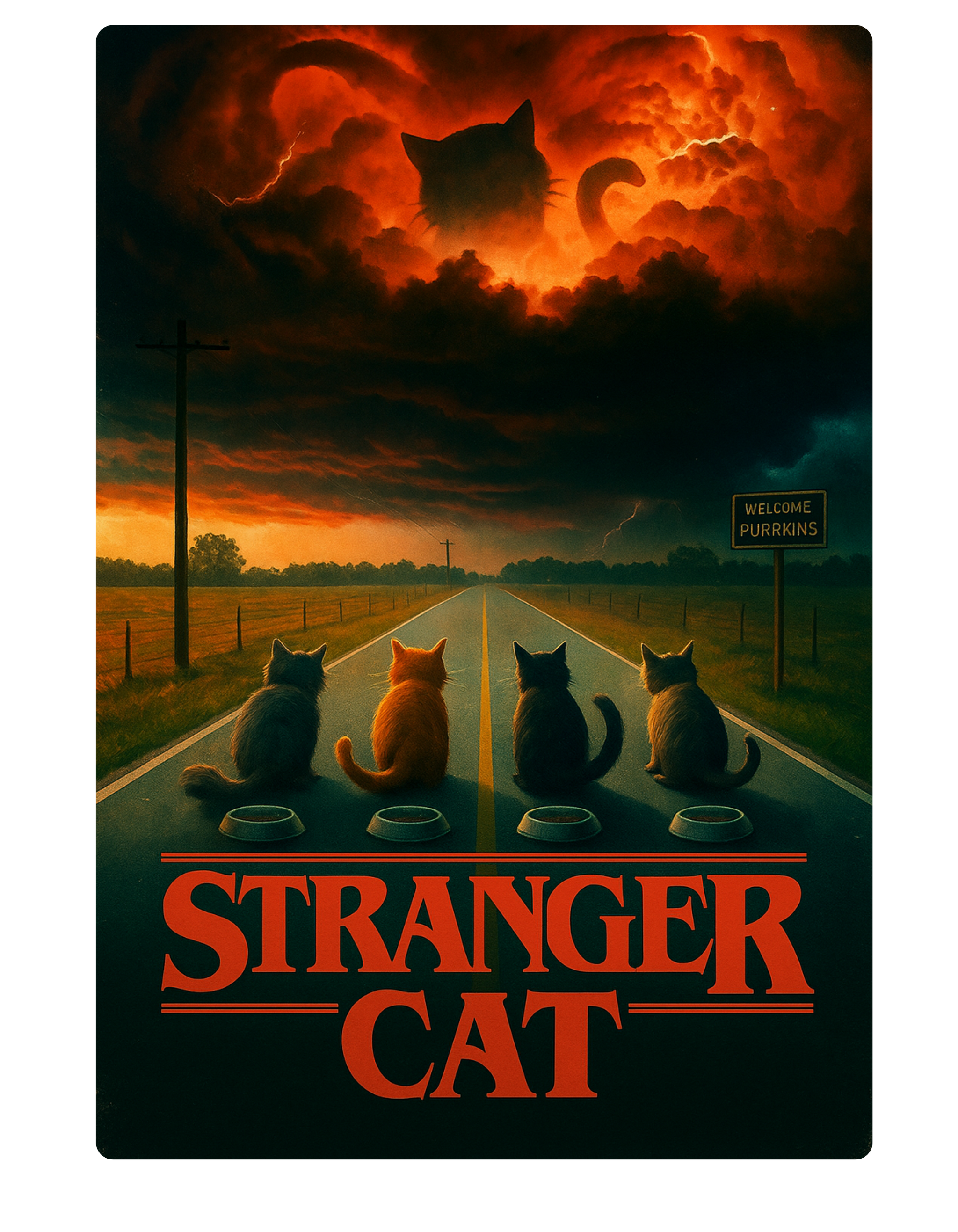 To miała być zwyczajna wieczorna misja do miski. Cztery koty, cztery brzuchy i jedna droga przez tajemnicze przedmieścia Hawkins... A jednak coś było nie tak. Niebo przybrało kolor kociej złości, a z chmur wyłaniał się... on. Ten, który od tygodni czaił się po drugiej stronie kuwety. Ten, który nie zostawiał śladów, ale zjadał ostatnią chrupkę. STRANGER CAT.