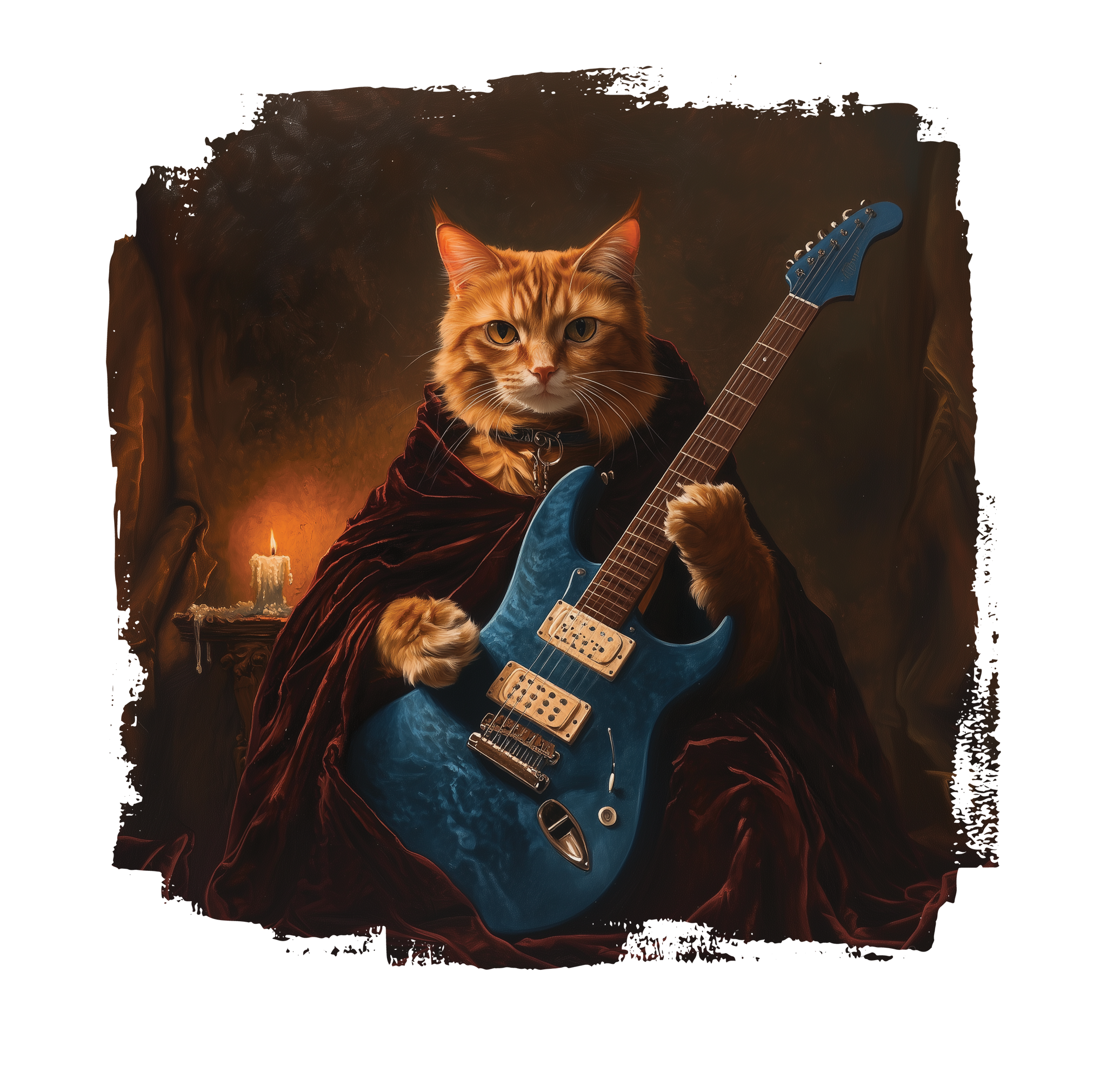 W zapomnianej jaskini, gdzie echo odbija się od kamiennych ścian niczym dawne legendy, siedzi on – koci prorok dźwięku. Jego futro lśni w świetle świec, a złote oczy płoną muzycznym uniesieniem. Ma sześć strun i dziewięć żyć – i nie zawaha się ich użyć.