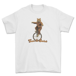 Koszulka z kotem na jednokołowcu vintage retro - Tour de Świat