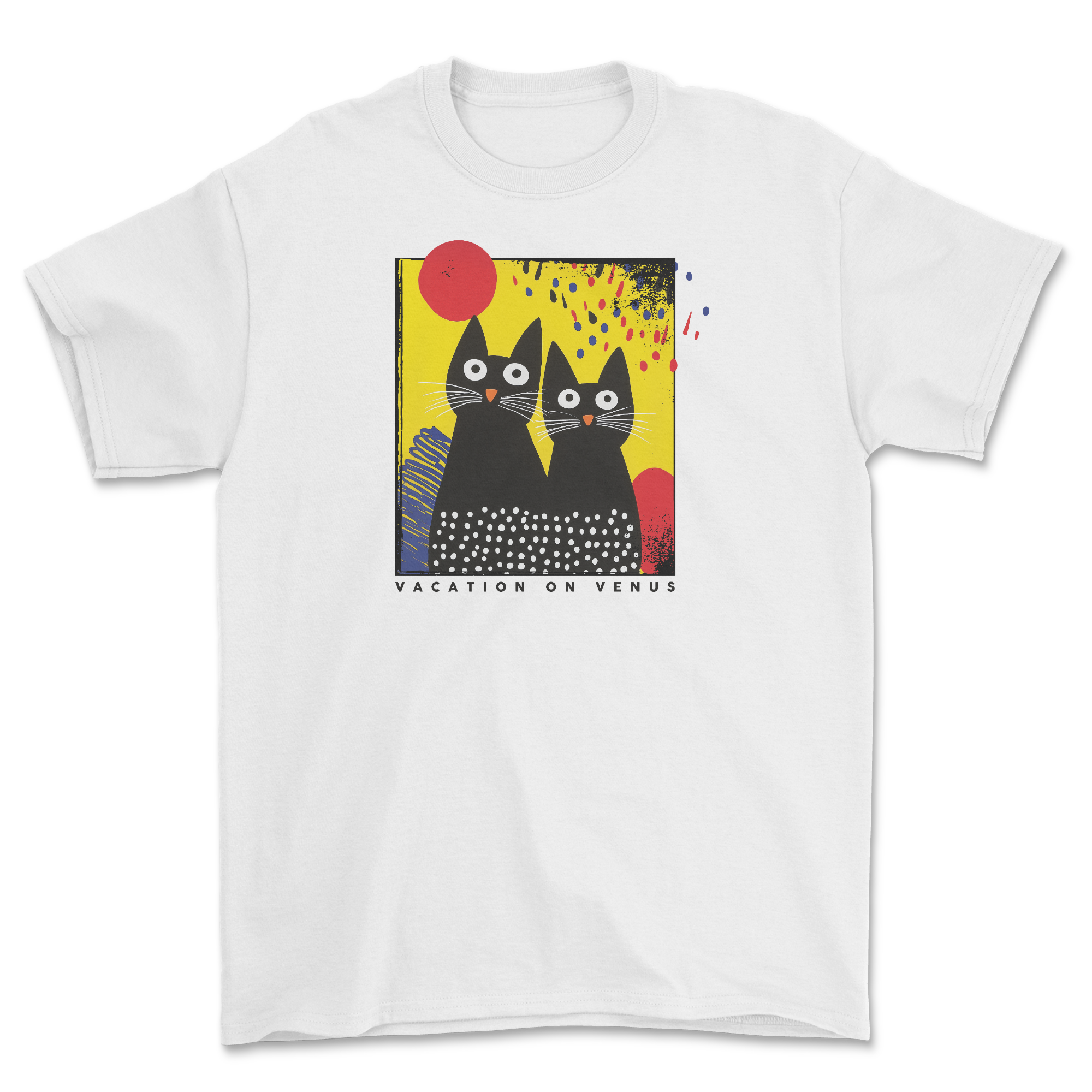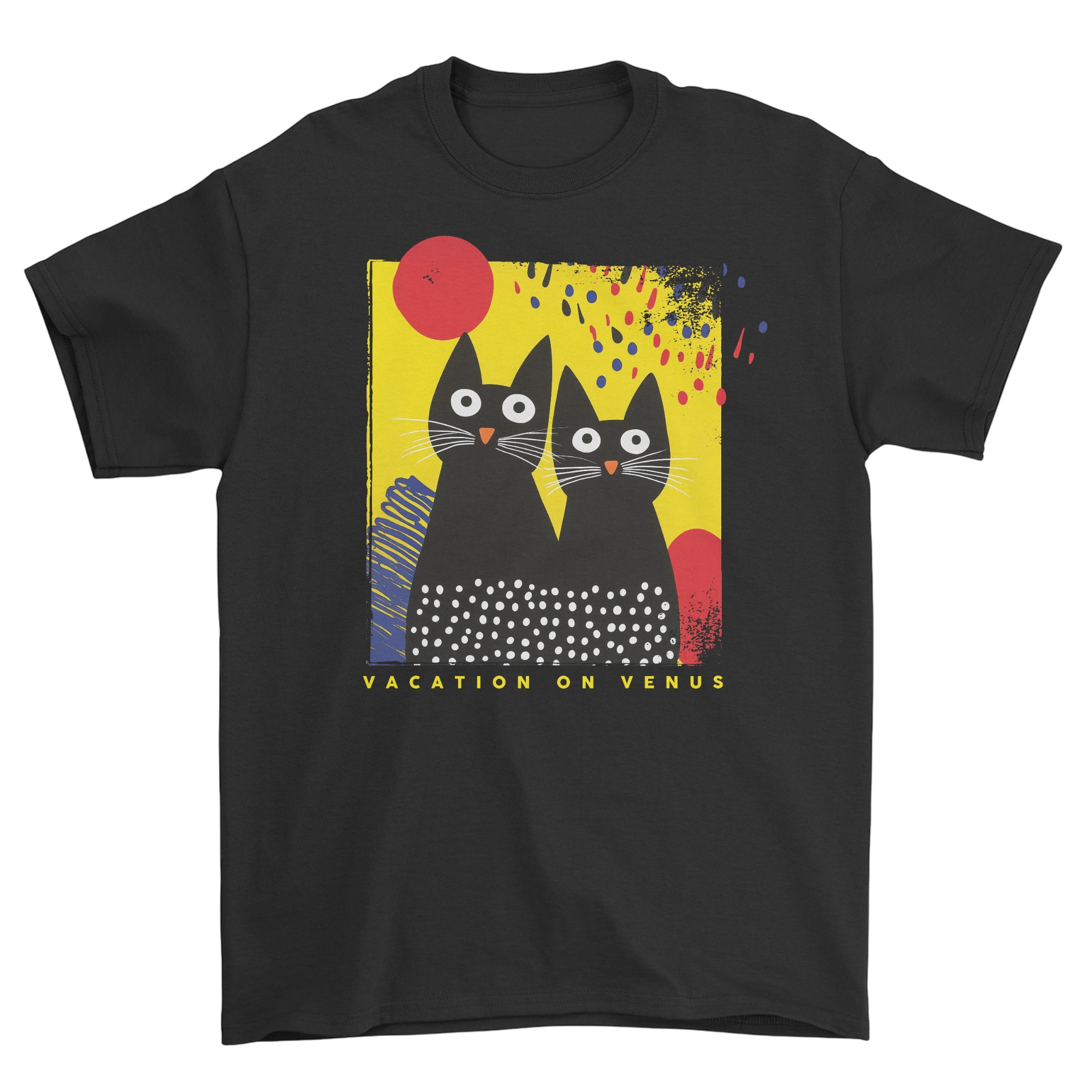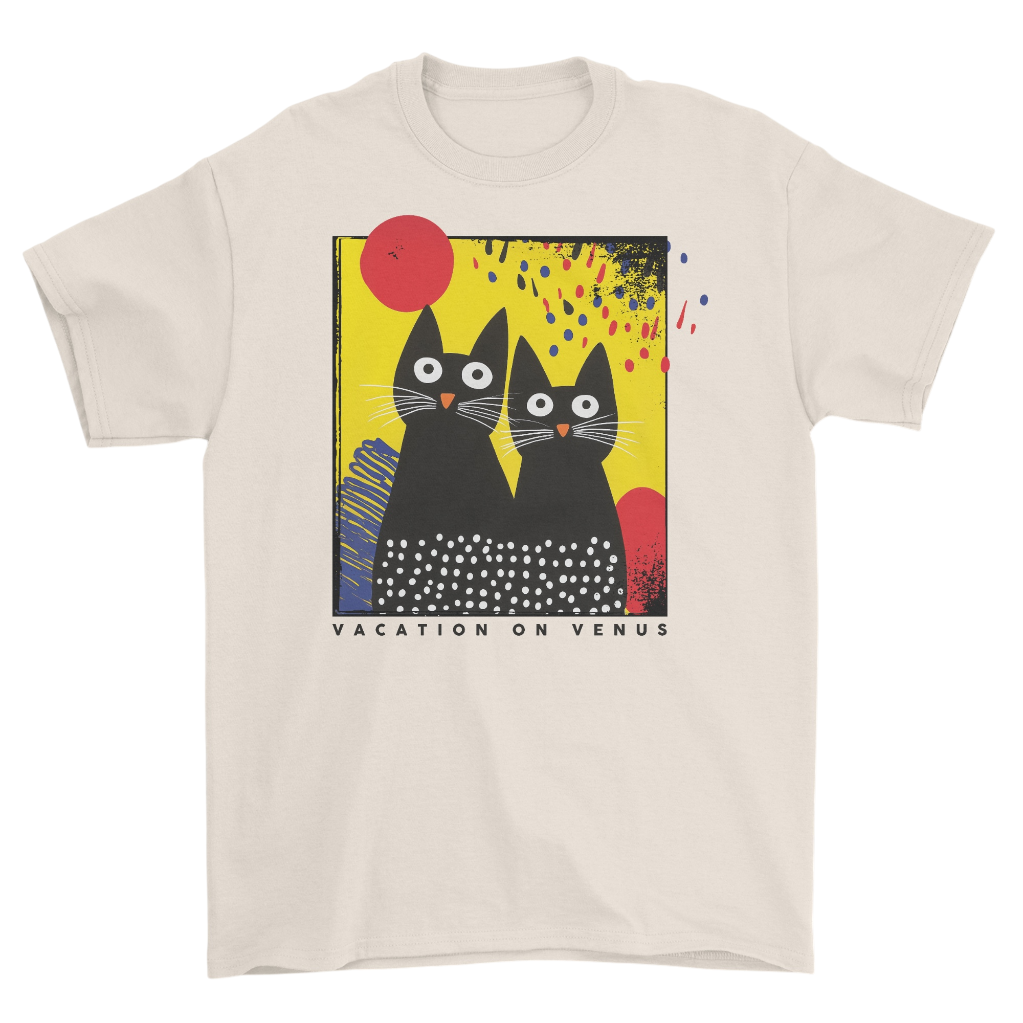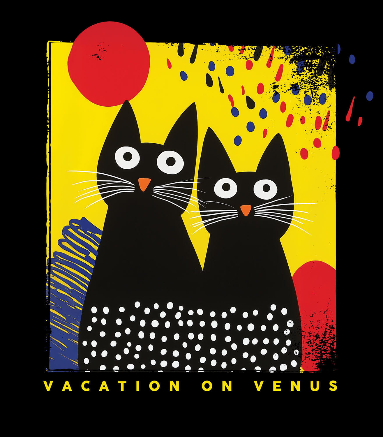 Na Wenus koty znalazły swój raj. Żółte niebo, czerwone słońce i tajemnicza atmosfera – wszystko, czego potrzebuje futrzany podróżnik międzygwiezdny. Na tym kosmicznym obrazie dwa czarne koty odpoczywają po długiej galaktycznej wędrówce. Czy prowadzą badania nad kosmicznymi wulkanami? A może po prostu relaksują się, łapiąc promienie gwiezdne i snując plany podboju nowych planet? Ta koszulka to opowieść o kociej wolności i ich sekretnym życiu w kosmosie. Czy jesteś gotowy, by dołączyć do tej surrealistycznej wyprawy?