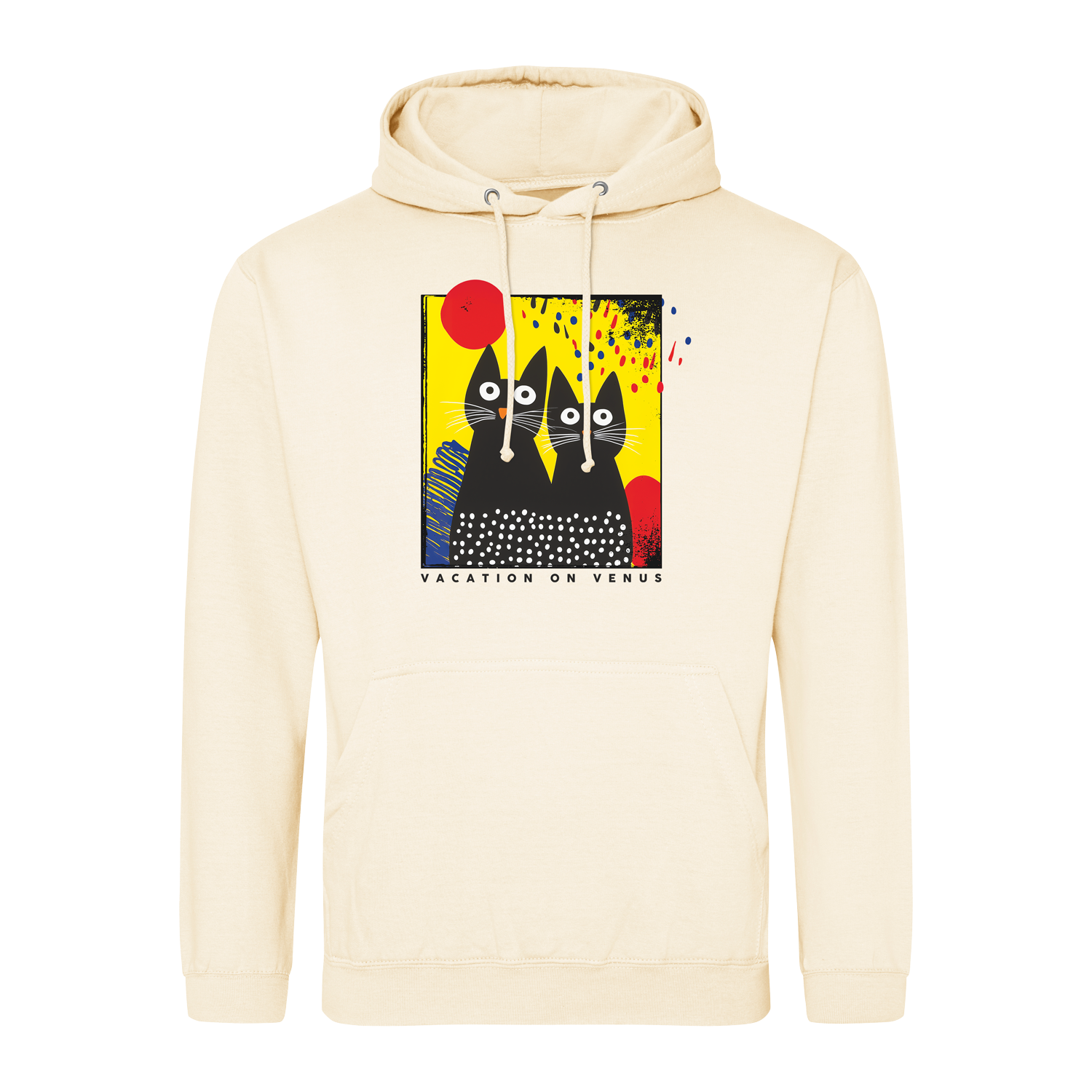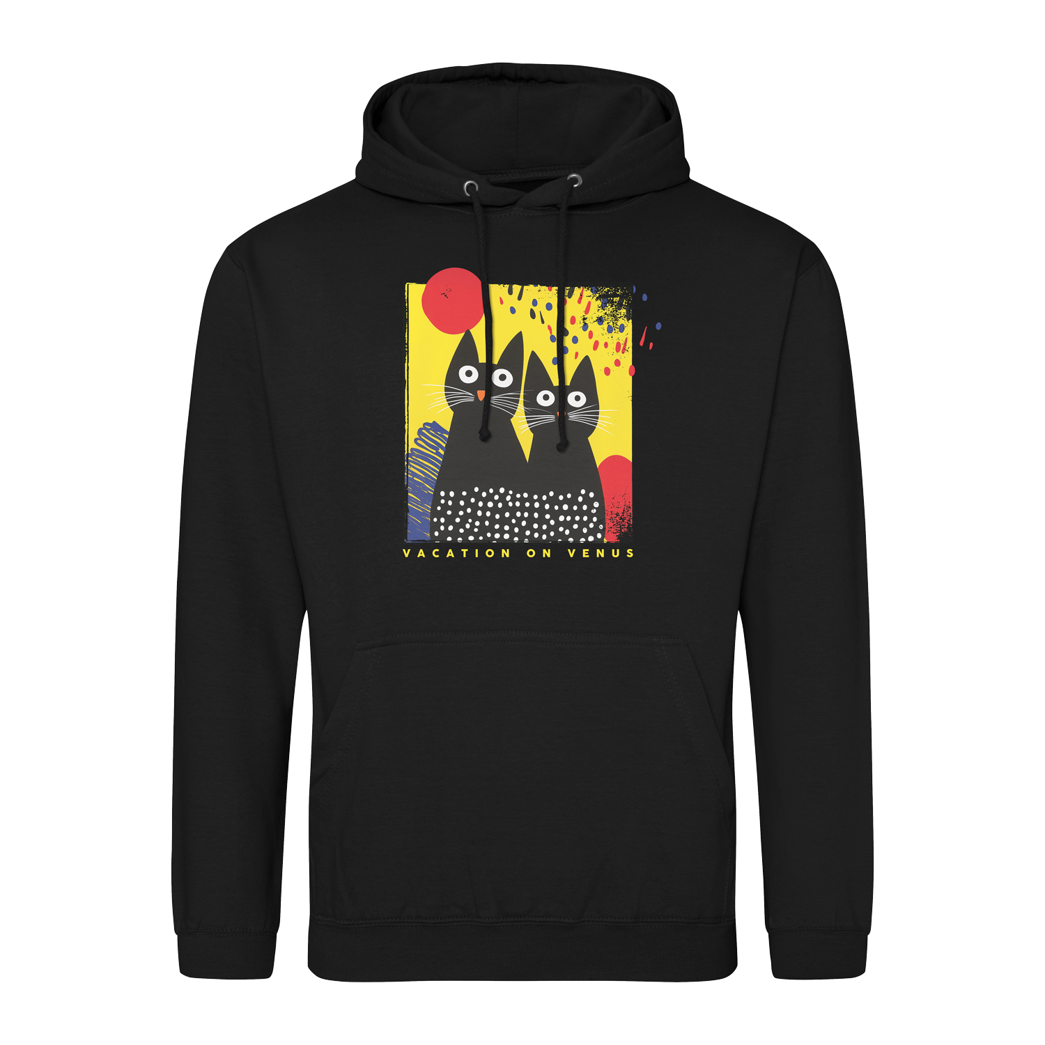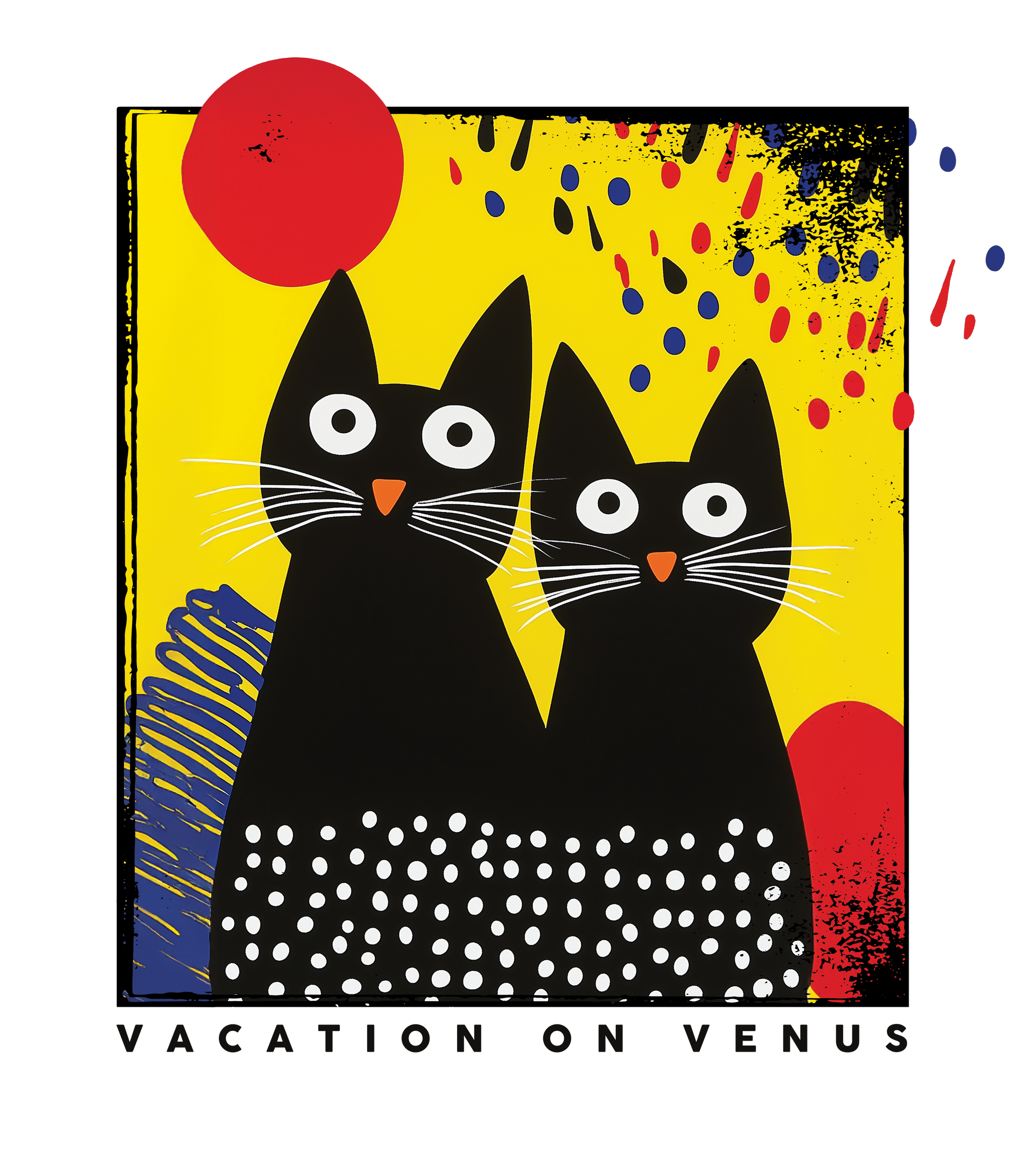Na Wenus koty znalazły swój raj. Żółte niebo, czerwone słońce i tajemnicza atmosfera – wszystko, czego potrzebuje futrzany podróżnik międzygwiezdny. Na tym kosmicznym obrazie dwa czarne koty odpoczywają po długiej galaktycznej wędrówce. Czy prowadzą badania nad kosmicznymi wulkanami? A może po prostu relaksują się, łapiąc promienie gwiezdne i snując plany podboju nowych planet? Ta bluza to opowieść o kociej wolności i ich sekretnym życiu w kosmosie. Czy jesteś gotowy, by dołączyć do tej surrealistycznej wyprawy?